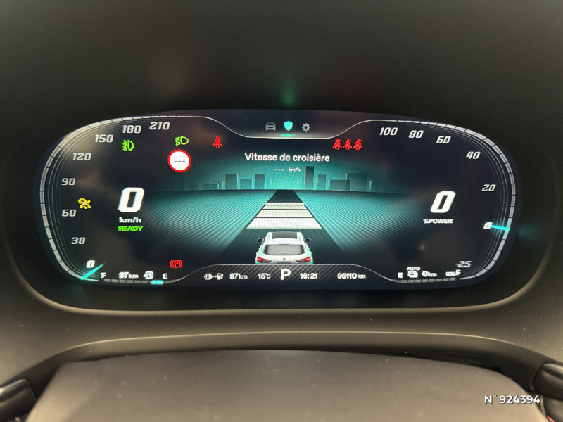 Système de récupération de l'énergie cinétique (KERS) / Siège conducteur réglable électriquement dans 6 directions / Caméra à 360° / Kit anti-crevaison / Climatisation bi-zone avec bouches de ventilation AR / Gestion intelligente des feux de route (IHC) / Câble de recharge Type 2 Mode 3 / Rétroviseur intérieur photochromatique / Teinte de carosserie Dover White / 6 HP / Projecteurs halogènes avec réglage de niveau / Rail de toit / Système d'aide au respect de la vitesse (SAS) / Aide au maintien dans la voie (LKA) / Avertissement de trafic à l'AR du véhicule (RTA) / Phares à LED / Indicateurs séquentiels LED AV et AR / Eclairage d'ambiance / Sellerie cuir noir Bader et Alcantara / Radio AM/FM/DAB / Ecran tactile 10,1" avec Navigation / Rétroviseurs extérieurs électriques chauffants à rabattement automatique / Montants de portes chromés / ABS, EBD, ESP, EBA / Câble de recharge domestique Type 2 Mode 2 / Volant gainé de cuir réglable en hauteur et profondeur avec commandes au volant / Surveillance des angles morts (BSD) / Avertisseur d'ouverture de portière (DOW) / Panneau de la console Premium / Siège du conducteur avec support lombaire manuel / Jante en alliage 18" Hurricane, 235/50 R18 / Siège passager AV réglable électriquement dans 4 directions / Pédalier aluminium / Compteurs numériques 12.3" / Eclairage de bienvenue / Frein de stationnement électronique / Avertissement de collision frontale (FCW) / Assistant à la conduite dans les embouteillages (TJA) / Système d'appel d'urgence automatique (eCall)