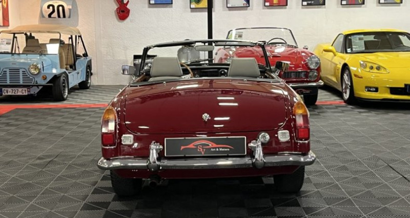 Cylindrée : 1798 cm3 Marque : MG Modèle : B Roadster + Overdrive Année : 1973 Moteur : 1.798 cc, 4 cylindres Transmission : Boîte manuelle 4 vitesses avec overdrive Couleur : Carmine red Intérieur : Gris Kilométrage : 16.875 km (compteur relevé) Description Carte grise collection Parfait état intérieur et extérieur (peinture totale en 2022) Aucune corrosion Boîte 4 vitesses toutes synchronisées Overdrive Allumage electronique Radiateur d' huile Ventilateur additionnel Roues fils (y compris roue de secours) Rare tableau de bord bois Volant Moto Lita et pommeau vitesse bois Seuils portes chromées Cache soupape alu Autoradio Coupe batterie (intérieur) Capote en super état +arceaux + tonneau cover + saute-vent plexi De iers rapports d' expertise 2025 Dossier factures