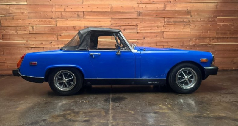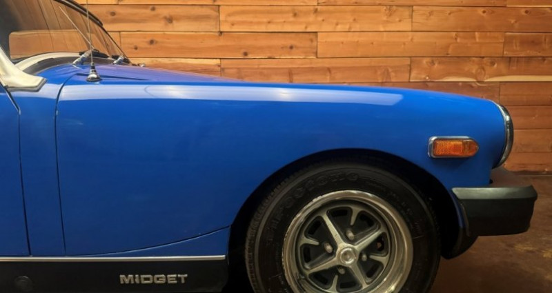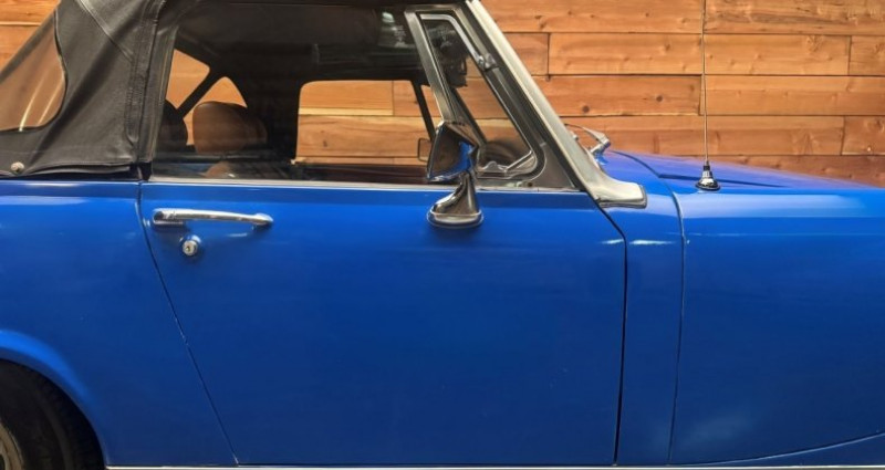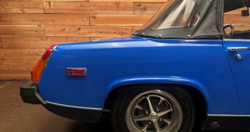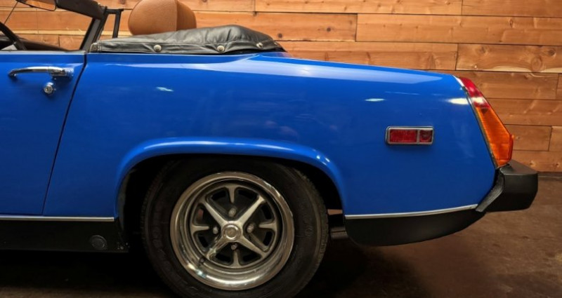 1975 MG Midget, Tahiti Blue, Autumn Leaf tan interior, believed 28, 839 original miles, two owners from new, good condition paint & body, minor imperfections, solid structure with minor surface rust, remarkably well-preserved interior, original upholstery, good condition black convertible top, black tonneau cover, boot cover, original AM/FM radio, dash, keys, shift knob, owner’s manual, jack, lug wrench, tool bag, unmodified engine bay, factory-correct components, 1500cc engine, 4-speed manual transmission, light, direct, delightful drive, slight thud from driveline, worn front lever shocks, recent work under previous ownership: new tires, battery, rubber floor mats, three-point seat belts, valve cover, air filter, spark plugs, hoses, rebuilt carburetor, fuel line, new sway bar, front and rear springs, lowered suspension with polyurethane bushings, distributor cap, rotor, spark plug wires replaced, oil pressure switch, general tune-ups and maintenance throughout ownership, smog-exempt in California.. Provenance : California. Disponibilité : environ 7 semaines, clés en main. 16 000 € tout compris (importation, taxes, procédure d'immatriculation). Annonce publiée le 25/11/2025