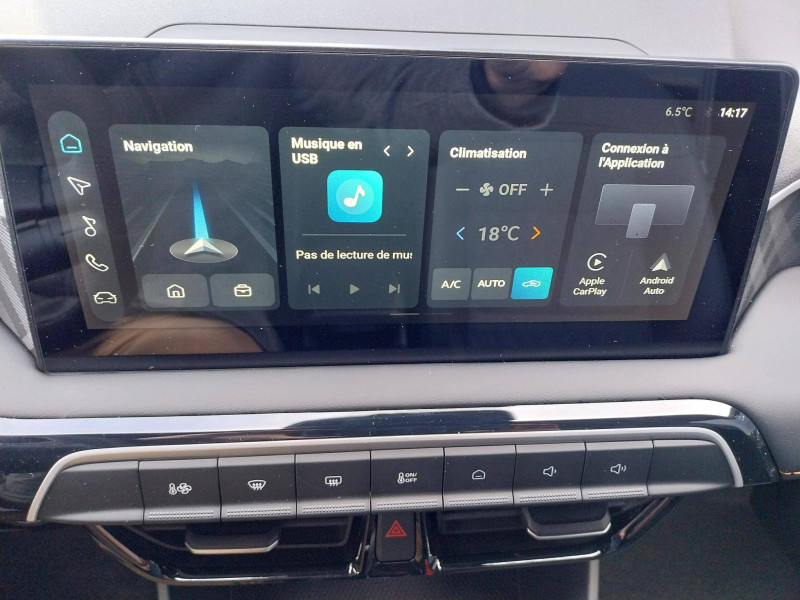 2 ports USB Type A / 6 HP / 7 Airbags (frontaux, latéraux, rideaux et central) / Aide au maintien dans la voie (LKA) / Alerte de circulation transversale AR (RCTA) / Anti-pincement de la vitre du conducteur / Assistant de conduite intelligent (ICA) / Avertissement de changement de voie (LCA) / Avertissement de collision frontale (FCW) / Avertisseur de somnolence (DMS) / Boîte automatique 3 rapports / Bouches d'aération AR / Cache-bagages / Caméra 360° / Capteur de pression des pneus TPMS direct / Ceintures de sécurité AR: 2 côtés 3 points + prétensionneur et limiteur de charge / Commutateur de l'airbag latéral du passager AV / Compteur numérique 7" / Contrôle de traction (TCS) / Eclairage du coffre / Filtre PM2.5 / Gestion intelligente des feux de route (IHC) / Intérieur couleur noir / Kit anti-crevaison / Maintien automatique à l'arrêt (Auto Hold) / Maintien d'urgence sur la voie (ELK) / Pare-soleils avec miroir de courtoisie / Peinture Dover White / Pneus 195/55 R16 / Poches aumonières derrière les sièges AV / Radio AM/FM/DAB+ / Rangements sous le plancher / Siège AR ISOFIX avec ancrages supérieur et inférieur / Siège passager AV réglable 4 directions / Sièges en similicuir/tissu noir / Surveillance des angles morts (BSD) / Système d'aide au respect de la vitesse (SAS) / Système E-Call / Système iSMART Lite avec commandes à distance du véhicule / Vitres électriques AV/AR dont vitre conducteur à impulsion / Volant chauffant / Volant en cuir microfibre