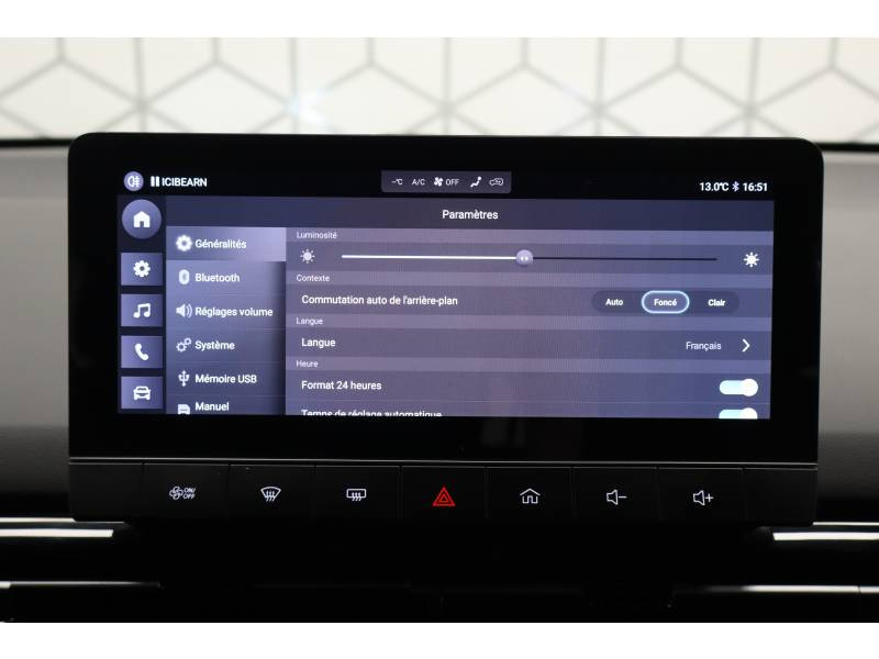 technologie de réseau local sans fil / réglages disponibles pour le volant / kit de dépannage pneumatique / Dispositif d'éclairage de lumière blanche à l'avant d'un véhicule qui s'allume automatiquement lorsque le véhicule se déplace vers l'avant afin d'accroître la visibilité du véhicule dans des conditions de lumière du jour. / dimension des jantes / materiau des jantes