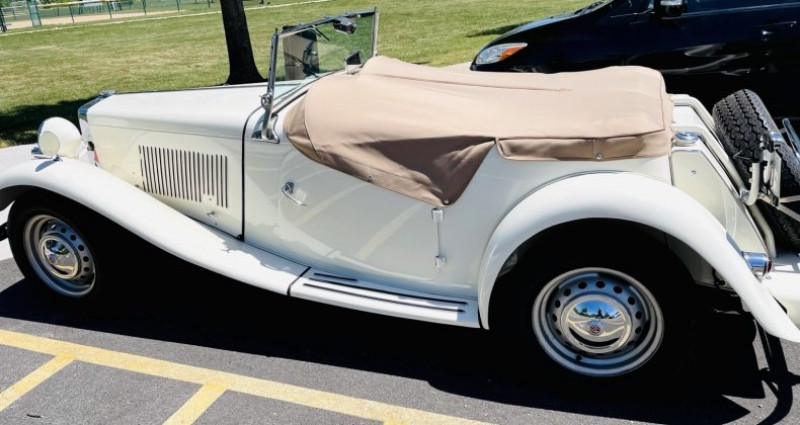 Informations fournies par le vendeur : Old English White MG TD • Red leather seats • Restored dash with correct gauges (speedometer, RPM, fuel, oil pressure, temp) • Vintage-style steering wheel • Clean carpet and door panels • Strong-running XPAG-style engine • Good oil pressure • Smooth clutch and gearbox • Electrical, lighting, and cooling all function correctly • Newer tan soft top + matching tonneau cover • Rear-mounted spare with chrome luggage rack • Includes Brand New Trailer. Provenance : Illinois. Disponibilité : environ 7 semaines, clés en main. 28 500 € tout compris (importation, taxes, procédure d'immatriculation). Nous représentons les acheteurs sur le marché nord-américain et sécurisons chaque étape du processus, de la sélection à la mise en circulation. Annonce publiée le 22/11/2025