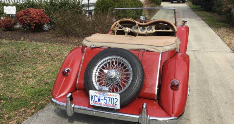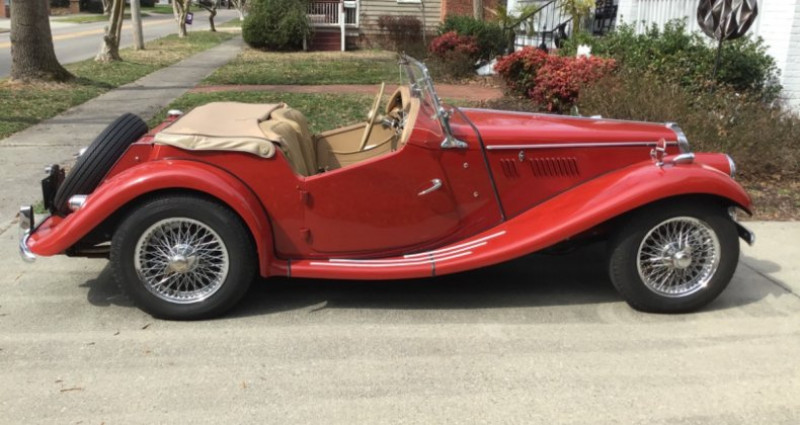 1954 MG TF, tan interior, red exterior, 27000 miles, clean vehicle title. Provenance : North Carolina. Disponibilité : environ 7 semaines, clés en main. 31 000 € tout compris (importation, taxes, procédure d'immatriculation). Annonce publiée le 30/11/2025