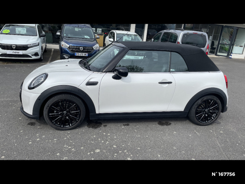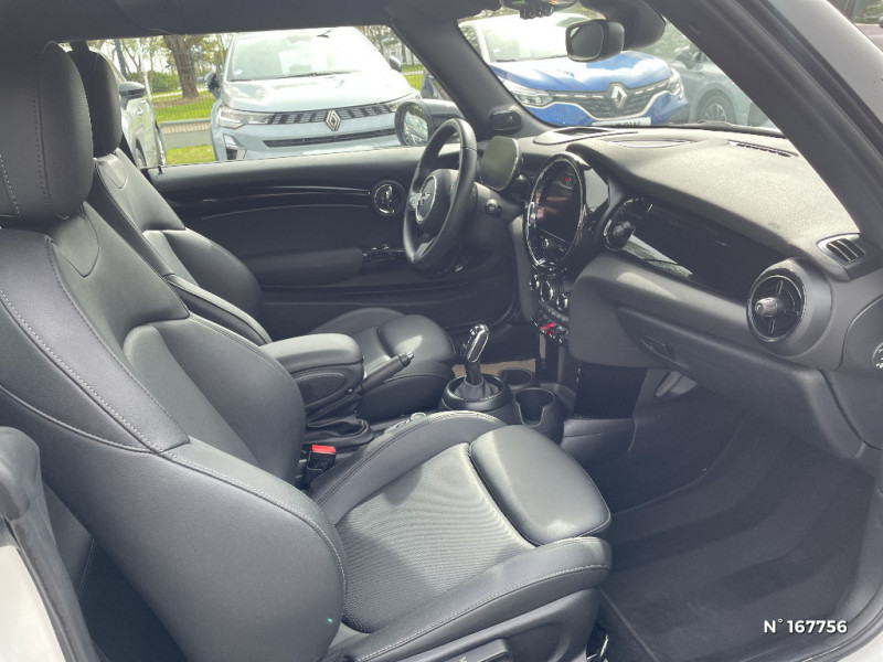 Accoudoir central AV inclinable en 4 positions / Rétroviseur intérieur anti-éblouissement électrochrome / Fixations ISOFIX à l'AV avec désactivation de l'airbag passager / Inserts décoratifs Piano Black / Détecteur de pluie et allumage automatique des projecteurs / Inserts annulaires et surface décorative pour la planche de bord "Piano Black" / Poignées de portes intérieures chromées / Poignée de coffre Piano Black / Feux de stop dynamiques : "Flashs" des feux stop en freinage d'urgence et allumage des feux de détresse à l'arrêt / Instrumentation digitale avancée / Rétroviseurs rabattable électriquement et fonction anti-éblouissement côté conducteur / Système de manoeuvres automatiques avec radars de stationnement AV/AR / Eclairage d'ambiance / Colour Line Carbon Black / Volant en cuir 3 branches réglable en hauteur et en profondeur avec insert Piano Black / Coques de rétroviseurs dans la teinte de la carrosserie / Ouïes latérales noires avec répétiteurs de clignotants intégrés / 2 Airbags de tête, thorax et de bassin pour le conducteur et le passager AV intégrés dans la partie latérale des sièges AV coté portière / Fixations ISOFIX sur les 2 sièges AR et sur le siège passager AV / Système de sécurité en cas de tonneau et entièrement encastré relié au verrouillage de dossier (banquette AR) et au logement des enrouleurs automatiques et du renvoi de ceinture supérieur / Ecran central 8,8" / MINI Safety (Assistance à la conduite) / Surveillance éclairage extérieur : Feux AV/AR, antibrouillards, feux de positions et clignotants / Système Bluetooth (Téléphone & Streaming Audio) / Sièges Advance AV / Projecteurs Full LED avec feux de jour à LED et feux diurnes en cerclage complet intégrés dans les phares. Lumière "bi-LED" claire et efficace pour feux de croisement et feux de route / Poignées de portes chromées / Tapis de sol en velours / Capote noire / Deuxième clé radiocommandée / Système de haut-parleurs Hifi Harman/Kardon / Clignotants blancs / Filet anti-remous / Kit Rangement / Réglage en hauteur du siège passager AV / Ecrous de roues antivol / 3ème feu stop / Always Open Timer / Système d'accès aux places AR Easy-Entry / Verrouillage centralisé des portes, du coffre et de la trappe à carburant / TeleServices / Barres de calandre Piano Black / Boîte de vitesses 7 rapports à double embrayage / Touches multifonctions sur le volant / Connectivité avancée et recharge sans fil par induction / Remote Services / Affichage tête-haute rétractable (HUD) / Sièges AV Sport avec Sellerie Similicuir Carbon Black / Feux AR à LED avec design Union Jack / Freins à disques à l'AV (ventilés) / Pare-chocs AV/AR dans la teinte de la carrosserie / Fonction profile: import/export des données et réglages véhicule / Fonction Start/Stop et démarrage sans clé / Réglage électrique de la portée des projecteurs / Vitre AR chauffante avec essuie-glace / Crash Sensor activation automatique en cas d'accident: déverrouillage des portes, éclairage intérieur, feux de détresse, coupure batterie et pompe à carburant / Fonction sécurité piéton avec capot actif / Trappe à carburant côté droit / Seuils de portes chromés / Sortie d'echappement simple côté gauche / Baguettes de seuil de porte avec inscription de la motorisation façon métallique / 2HP et 2 woofers / Verrouillage automatique des portes dès 16 Km/h / ABS, y compris assistance au freinage d'urgence et contrôle de freinage en courbe / Indicateur de pressions des 4 pneus et avertisseur automatique en cas de perte de pression d'au moins 25% sur un des pneus / MINI Driving Modes / Régulateur de vitesse avec fonction freinage / Ordinateur de bord multifonctions / Becquet AR de toit / Contour de calandre chromé / Ciel de pavillon Satellite Grey / Prise 12V sous la console centrale / Teinte d'habitacle Carbon Black / Fonction "Follow me home", éclairage d'accompagnement / Autoradio MINI Visual Boost / MINI Connected / Kit Eclairage / Calandre au contour chromé avec lamelles noires / Lève-vitres électriques AV avec commande à impulsion et protection anti-pincement / Système de maintenance intelligent Condition Based Service / Porte-boissons AV (2) / Triangle de présignalisation avec kit de premiers secours / Tuner DAB / Contrôle Dynamique de stabilité DSC avec DTC et EDLC / Jantes alliage 6.5Jx16" (195/55 R16) design "Victory Spoke" noires