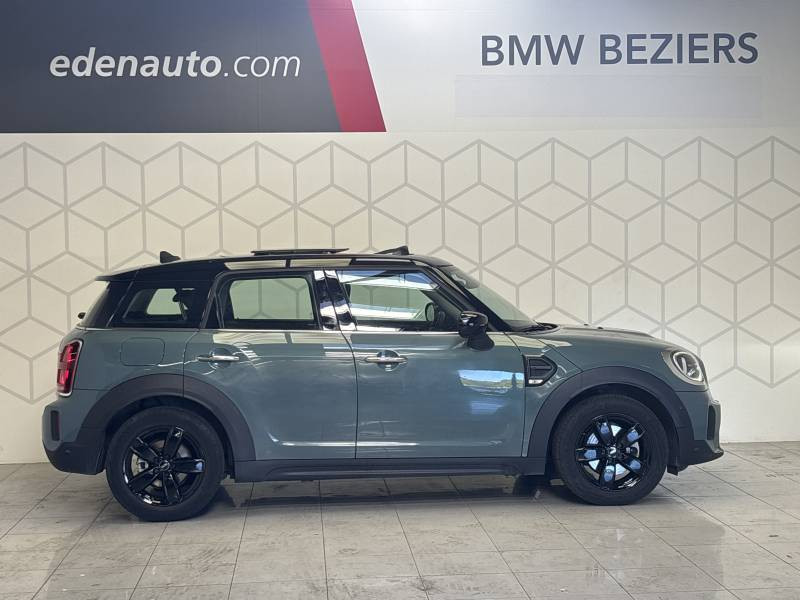 2HP de graves sous les sièges AV / 3ème feu stop à LED dans le spoiler de toit / 4 anneaux d'arrimage dans le coffre / 4HP de médiums dans les portes AV/AR / Airbags de tête pour les 4 places extérieures / Apple CarPlay à durée illimitée / Avertisseur sonore / Baguette en chrome sur le pourtour inférieur de toutes les vitres / Banquette AR coulissante Réglage longitudinal des sièges AR sur 13 cm / division 60:40 de la surface d'assise. Dossier rabattable 40:20:40. Réglage du dossier en positions Cargo et Confort / Boîte de vitesses automatique à double embrayage à 7 rapports / Buses de lave-glace et rétroviseurs extérieurs dégivrants / Cerclage de la calandre en chrome et 3 barres de calandre en Schwarz à haute brillance / Clignotants blancs / Colour Line Carbon Black / Comprend instrument central avec anneau à LED / Connectivité avancée et recharge sans fil par induction / Contrôle Dynamique de stabilité DSC / Coques de rétroviseurs dans la teinte de la carrosserie / Countryman en lettres uniques chromées au centre au hayon / désignation de la motorisation / DAB Tuner / Détecteur de pluie et allumage automatique des projecteurs / Dossier de banquette AR / rabattable en trois parties 40:20:40 / Eclairage de la boîte à gants à LED (blanc) / Eclairage intérieur et liseuses à LED à l'AV/à l'AR (blanc) / 8 / Ecrous de roues antivol / Feux AR à LED avec design Union Jack / Feux de stop dynamiques / Fixation ISOFIX AV avec désactivation de l'airbag passager AV / Frein à main électrique / Indicateur de pressions des 4 pneus et avertisseur automatique en cas de perte de pression d'au moins 25% sur un des pneus / Inserts décoratifs Piano Black / Instrumentation digitale avancée / Jantes en alliage 17 design Channel Spoke Black 7.5 J × 17 / pneumatique 225/55 R 17 / Kit de réparation de pneus / Kit Eclairage / Kit Rangement / MINI Connected / MINI Driving Modes / MINI Excitement package / MINI Safety (Assistance à la conduite) / Nouvelle instrumentation digitale avancée / Ordinateur de bord multifonctions / Performance Control / Poignée de hayon en piano black / Poignées de portes en chrome / Poignées intérieures de portes chromées / Points d'ancrage pour jusqu'à deux sièges enfants ISOFIX sur la banquette arrière / Porte-boissons (2) / Prise 12 V dans la console centrale AV / Projecteurs Full LED à faisceaux adaptatifs à fond noir / Réglage électrique des sièges avec fonction mémoire / Réglage en hauteur du siège passager AV / Remote Services (3 ans) / Rétroviseur intérieur anti-éblouissement électrochrome / Rétroviseurs rabattable électriquement et fonction anti-éblouissement côté conducteur / RTTI (Info Trafic en temps réel / 3 ans) / Sellerie Tissu Firework / Sidescuttle en noir / avec clignotant blanc / Sièges AV Sport avec Sellerie Similicuir Black / Sortie d'echappement simple côté gauche avec finition chromée / Système de haut-parleurs Hifi Harman/Kardon / Système de manoeuvres automatiques avec radars de stationnement AV/AR / Système de navigation MINI avec écran tactile 8 / 8 / Système de verrouillage centralisé / Tapis de sol en velours / Teinte de carrosserie métallisée - Sage Green Metallic / TeleServices / Toit ouvrant panoramique en verre / Touches multifonctions sur le volant avec régulateur de vitesses / Triangle de présignalisation / Tuner DAB / Volant Sport gainé Cuir