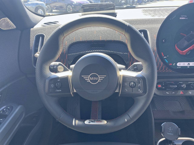 2 Portes-gobelets sur la console centrale / 3ème feu de stop intégré au spoiler AR / 5 places / Active Guard -Avertissement de franchissement de ligne avec impulsion sur la direction (>70km/h) -Avertisseur de collision frontale avec intervention de freinage (3-210km/h) -Avertisseur de présence d'un véhicule avec action sur les freins (3-35km/h) -Avertisseur d'intersection (détection risque collision latérale 3-85km/h) -Avertisseur présence piéton/cycliste lors d'un virage en intersection (3-35km/h) -Assistance de limitation de vitesse -Assistance d'évitement en cas de risque de collision frontale / Airbag entre les deux sièges AV en cas de collision latérale / Airbags de tête à l'AV et aux places latérales AR / Appel d'Urgence Intelligent (durée de vie de la voiture) Appel automatique vers le centre d'assistance MINI en cas d'accident, Touche SOS pour Appel d'Urgence manuel, Les données importantes sont automatiquement transmises aux secours (identification et localisation de la voiture, nombre de passagers à bord, statuts des airbags), Ce service utilise la carte SIM montée d'usine et ne requiert pas l'utilisation du smartphone du client / Boîte automate à fonction continue / Buse de lave-glace pour caméra de recul / Câble de recharge Professionnel Mode 3 (T2-T2) pour la recharge publique / Câble de recharge Professionnel Mode 3 (T2-T2) pour la recharge publique - 5 mètres / Capteurs d'impact - Activation de l'airbag, des feux de détresse, de l'éclairage intérieur - Déverrouillage des portes - Activation de la borne batterie de sécurité / Carte MINI Charging / Carte SIM 4G LTE / Ceintures de sécuritéà 3 points à toutes les places / Ciel de pavillon anthracite / Clés (2) radiocommandées à mémorisation automatique des réglages "Personal Profile" / Clignotants LED intégrés aux feux de jour AV / Commande électrique du hayon / Compartiment à bagages : 2 crochets de sac, filet sur panneau garuche, prise 12V rangement additionel (volume spécifique au modèle) sous plancher amovible / Connectivité téléphone Bluetooth avec interface USB / Contour de calandre en noir mat / Contour de vitres noir / Contrôle de la traction (TCS) / Contrôle de stabilité dynamique (DSC) avec dotation élargie - Contrôle de stabilité dynamique (DSC) - Contrôle de freinage en courbe (CBC) - Contrôle automatique de la stabilité (ASC) - Contrôle dynamique des freins (DBC) - Stabilisation de remorque - Assistant dynamique de motricité (DTC) - Freinage de séchage - Assistant de démarrage en côte - ABS, Système anti blocage des roues / Désignation du modèle sur le hayon à droite / Détecteur de pluie et allumage automatique des projecteurs / Double plancher de coffre / Drive Assist -Avertisseur d'angle mort (>20km/h avec voyant d'alerte et intervention sur la direction) -Avertisseur de risque de collision AR (déclenchement automatique des warning avec fréquence doublée) -Avertisseur de sortie (détecte les objets approchant (véhicule, cycliste) et alerte en cas d'ouverture de la portière) -Avertisseur de trafic transversal AR (Avertisseur en cas de circulation transversale, incrustation sur image caméra de recul, freinage automatique en cas de non réaction) / Eclairage de bienvenue autour du véhicule / Eclairage de plaque d'immatriculation à LED / Ecrous de roues antivol / Equipement supplémentaires / Feux AR à LED intégrant les clignotants / Fixation ISOFIX à l'AV avec désactivation de l'airbag passager / Fixations ISOFIX / i-Size pour les deux sièges AR extérieurs / Fonction cargo : Réglage de l'inclinaison de la banquette AR sur 12 degrés (volume de chargemen d'environ 85-100 litres) / Fonctionnalité "Follow Me Home" (éclairage d'accompagnement) : les feux de croisement restent allumé quelques instants / Fonction Start&Stop automatique / Frein de parking électromécanique avec fonction "Automatic Hold" / Freins sport JCW / Hotspot WiFi / Jantes en alliage léger 19" John Cooper Works Runway Spoke Black, 8J x 19 / pneus 245/45 R 19 Jet Black / John Cooper Works sièges sport / Kit de mobilité - Bouteille de mastic pour pneumatiques, compresseur électrique 12 V / Kit éclairage Lampes de courtoisie, éclairage boîte à gants et intérieur de l'accoudoir central, éclairage habitacle AV et AR, éclairage plancher AV et AR, éclairage du miroir de courtoisie, Lampes de lecture centrales, élairage coffre à bagages sur un côté / Kit Rangement bac de rangement dans les portes AV et AR avec porte-bouteille, compartiment de rangement central, compartiment de rangement avec couvercle rabattable sous l'accoudoir central AV, crochets de vêtements AR / Lève-vitres AV et AR électriques avec commande par impulsion et sécurité enfants / Logo MINI AV et AR en Vibrant Silver / Mesure individuelle de pression des pneumatiques / MINI Interaction Unit avec écran OLED 240mm Technologie OLED, 240mm de diamètre, Nouveau système d'exploitation Operating System 9, MINI Intelligent Personal Assistant : le nouvel assistant personnel commandable par la voix ("Hey MINI"), pour aider le conducteur tout au long de son parcours, Remote Software Upgrade: mise à jour du logiciel de votre MINI à distance, Connectivité 4G LTE, Mise à jour pour les données de carte de navigation Over the Air (OtA), MINI Navigation / MINI Sounds / Notice d'utilisation de la voiture intégrée et carnet d'entretien électronique avec MINI Service History / Ordinateur de bord, Check-Control et indicateur de température extérieure / Pare-choc AV avec air curtains en noir mat / Park Assist - radars de stationnement AV et AR et de la Caméra de recul -Manoeuvres de stationnemment en créneau et en bataille facilitées par mesure automatique de l'écart entre deux voitures à une vitesse inférieure à 35 km/h -Fonction de freinage automatique (PDC actif) en marche AR en cas d'obstacle lors d'une manoeuvre de stationnement effectuée manuellement par le conducteur (jusqu'à 