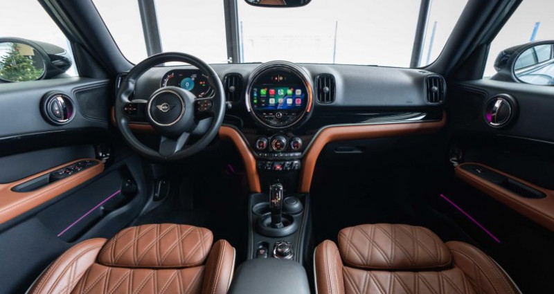 ======= OPTIONS ======= Barres longitudinales de toit Commande électrique du hayon Jantes 18 Black Pin Spoke Peinture métallisée Sage Green Sièges avant Sport avec sellerie cuir Chester Malt Brown Toit et rétroviseurs noirs ======= EQUIPEMENTS DE SERIE ======= 2 sorties d'echappement chromées Accès Confort Accoudoir central avant Appel d'Urgence Intelligent Apple CarPlay sans fil Banquette arrière coulissante Becquet arrière avec troisième feu de stop à LED Boîte de vitesses automatique Sport avec palettes au volant Calandre au contour chromé avec grille façon nid d abeilles et logo S rouge Caméra de recul Clignotants blancs Climatisation automatique bi-zone Ecrou antivol de roues Feux arrière à LED avec design Union Jack Information Trafic en Temps Réel RTTI Inscription ALL4 sur les portes avant, en bas à droite Instrumentation digitale avancee Kit de mobilité dans le coffre Kit Eclairage Kit rangement Kit visibilité Mesure individuelle de pression des pneumatiques MINI driving modes MINI Excitement Package : éclairage d ambiance MINI Navigation System MINI Safety : freinage d urgence intelligent, avertisseur de franchissement involontaire de ligne Ouïes latérales chromées Pare-brise chauffant Phares Full LED avant avec éclairage diurne LED Poignée de hayon Piano Black Poignées de portes aspect chrome Radars de stationnement arrière Régulateur de vitesse actif Régulateur de vitesse avec fonction freinage Répétiteurs de clignotants à LED Rétroviseur extérieur anti-éblouissement coté conducteur Rétroviseur intérieur électrochrome Rétroviseurs rabattables électriquement Sièges Advanced pour conducteur et passager avant Sièges avant chauffants Surfaces intérieures Piano Black Système Bluetooth avancé avec recharge par induction du téléphone Système d'alarme Tapis de sol en velours Touches multifonctions sur le volant Triangle de présignalisation et trousse de premiers secours Volant Sport gainé cuir Nappa Nb. Vitesses : 8 Conso Mixte : l/100