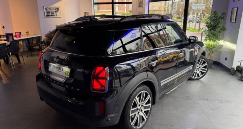 Cylindrée : 1499 cm3 EQUIPEMENTS DE SERIE ========================= 2HP de graves sous les sieges AV 3eme feu stop a LED dans le spoiler de toit 4 anneaux d'arrimage dans le coffre 4HP de mediums dans les portes AV/AR Acces Confort en relation avec Z2O Accoudoir central AV Affichage tete-haute retractable (HUD) Airbags de tete pour les 4 places exterieures Airbags frontaux pour conducteur et passager AV Airbags lateraux AV Appel d'urgence intelligent Apple CarPlay a duree illimite. En relation avec 7GH Apple CarPlay a duree illimite. En relation avec 7GK Autoradio MINI Visual Boost Avertisseur sonore Baguette en chrome sur le pourtour inferieur de toutes les vitres Buses de lave-glace et retroviseurs exterieurs degivrants Cable de chargement prise secteur + cable de chargement type 2 type 2 Cable de recharge Type 2 - Type 2 monophase Camera de recul en relation Z2N Cerclage de chrome avec structure alveolee en Schwarz mat, logo S jaune. Pourtour interieur de la Cerclage de la calandre en chrome et 3 barres de calandre en Schwarz a haute brillance Ciel de pavillon Satellite Grey Clignotants blancs Climatisation automatique bi-zone Colour Line Carbon Black Comprend instrument central avec anneau a LED Conciergerie (3 ans) En relation avec 7GK Connectivite avancee et recharge sans fil par induction En relation avec 7GK Controle Dynamique de stabilite DSC Coques de retroviseurs dans la teinte de la carrosserie Countryman en lettres uniques chromees au centre au hayon, designation de la motorisation Detecteur de pluie et allumage automatique des projecteurs Dossier de banquette AR, rabattable en trois parties 40:20:40 Eclairage de la boite a gants a LED (blanc) Eclairage du coffre a LED, a droite (blanc) Eclairage en cascade (orange) Ecran tactile 8,8 Ecrous de roues antivol eDrive Services (3 ans) En relation avec 7GG eDrive Services (3 ans) En relation avec 7GH eDrive Services (3 ans) En relation avec 7GK Embout d'echappement simple, a gauche, sans enjoliveur en chrome Feux de stop dynamiques Fixation ISOFIX AV avec desactivation de l'airbag passager AV Frein a main electrique Indicateur de pressions des 4 pneus et avertisseur automatique en cas de perte de pression d'au Inscription ALL4 sur les portes AV, en bas a droite Instrumentation digitale avancee Jantes en alliage 17 design Imprint Spoke, 7.5Jx17 et pneumatiques 225/55 R17 MINI Connected MINI Driving Modes MINI Safety (Assistance a la conduite) Mode de conduite (Sport, Mid , Green) Nouvelle instrumentation digitale One sur le cote droit du hayon Ordinateur de bord multifonctions Pack Connected Media Performance Control Poignee de hayon en piano black Poignees interieures de portes chromees Points d'ancrage pour jusqu'a deux sieges enfants ISOFIX sur la banquette arriere Porte-boissons (2) Prise 12 V dans la console centrale AV Projecteurs antibrouillard AV a LED Projecteurs Full LED a faisceaux adaptatifs a fond noir Projecteurs Full LED directionnels a fond noir Protection pietons acoustique Radars de stationnement AR Radars de stationnement AV et AR en relation avec Z2N Reglage electrique des sieges avec fonction memoire en relation avec Z2O Reglage en hauteur du siege passager AV Regulateur de vitesse avec fonction freinage Remote Services (3 ans) Remote Services (3 ans) En relation avec 7GG Remote Services (3 ans) En relation avec 7GH Remote Services (3 ans) En relation avec 7GK Retroviseurs exterieurs rabattables electriquement, En relation avec 430 RTTI (Info Trafic en temps reel, 3 ans) En relation avec 7GH RTTI (Info Trafic en temps reel, 3 ans) En relation avec 7GK Services Connected Drive (3 ans) Services Connected Drive (3 ans) En relation avec 7GG Services Connected Drive (3 ans) En relation avec 7GH Services Connected Drive (3 ans) En relation avec 7GK Servotronic Sidescuttle chromee avec logo MINI E cote gauche avec couvercle rabattable et acces a la prise de Sidescuttle en noir, avec clignotant blanc Sieges AV chauffants,En relation avec Z2O Sieges AV Sport Sieges AV Sport avec Sellerie Tissu/Similicuir Black Pearl Sortie d'echappement simple cote gauche avec finition chromee Surveillance de la pression des pneumatiques Systeme de haut-parleurs Hifi Harman/Kardon En relation avec Z2O Systeme de manoeuvres automatiques en relation avec Z2N Systeme de navigation MINI avec ecran 6.5 ou 8,8 En relation avec 7GH Systeme de navigation MINI avec ecran 6.5 ou 8,8 En relation avec 7GK Systeme de verrouillage centralise TeleServices Toit ouvrant panoramique en verre en relation avec pack city zen Touches multifonctions sur le volant avec regulateur de vitesses Triangle de presignalisation Tuner DAB Volant Sport gaine Cuir OPTIONS PRESENTES SUR CE VEHICULE ========================= Acces Confort : 400.00€ Accoudoir central AR : 260.00€ Alarme antivol : 490.00€ Apple CarPlay a duree illimitee : 0.00€ Assise modulable de coffre : 150.00€ Bandes decoratives de capot blanches : 160.00€ Bandes decoratives de capot grises : 160.00€ Bandes decoratives de capot noires : 160.00€ Banquette AR coulissante : 300.00€ Becquet AR de toit John Cooper Works : 200.00€ Camera de recul : 410.00€ Chrome Line interieur : 170.00€ Ciel de pavillon anthracite : 240.00€ Commande electrique du hayon : 460.00€ Conciergerie (3 ans) : 150.00€ Connectivite avancee et recharge sans fil par induction : 260.00€ Decoration interieure MINI Yours Piano Black illumine : 200.00€ Decoration interieure MINI Yours Shaded Silver illumine : 200.00€ eDrive Services (3 ans) : 0.00€ Filet de separation de coffre : 200.00€ Inserts decoratifs Piano Black : 0.00€ Jantes en alliage 17 design Channel Spoke Black : 0.00€ Jantes en alliage 18 design Black Pin Spoke avec run-flat, 7.5 J × 18 / pneumatiques 225/50 R18 : 1010.00€ Jantes en alliage 18 design Black Pin Spoke, 7.5 J × 18 / pneumatiques 225/50 R18 : 1010.00€ Jantes en alliage 18 design Pair Spoke avec run-flat, 7.5 J × 18 / pneumatiques 225/50 R18 : 1010.00€ Jantes en 