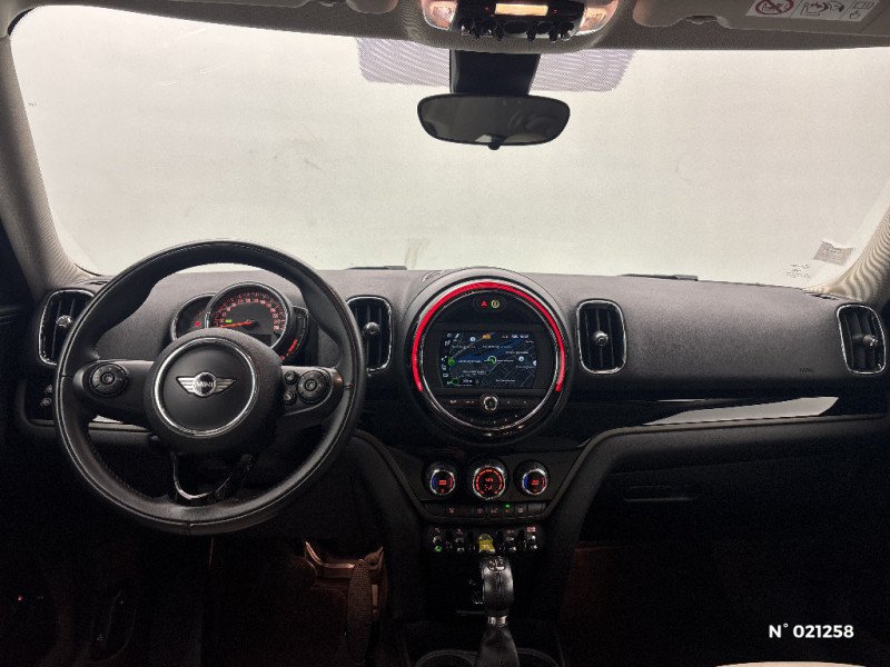 Autoradio MINI Visual Boost / Eclairage intérieur et liseuses à LED à l'AV/à l'AR (blanc) / Ecrous de roues antivol / Finition Red Hot Chili / Frein à main électrique / Inserts décoratifs Hazy Grey / Jantes en alliage 18" design "Pin Spoke", 7.5 J à? 18 / pneumatiques 225/50 R18 / Kit de réparation de pneus / Kit Eclairage / Kit Rangement / MINI Connected / MINI Driving Modes / MINI Excitement package / Avertisseur de risque de collision et système anti-collision / Avertisseur 2 tons / Baguette en chrome sur le pourtour inférieur de toutes les vitres / Boîte de vitesses automatique à 6 rapports avec fonction Start & Stop du moteur / Câble de chargement / Cerclage de chrome avec structure alvéolée en Schwarz mat, logo "S" jaune. Pourtour intérieur de la bordure de calandre en chrome. Ouïe d'entrée d'air supplémentaire dans la partie inférieure de la calandre supérieure / Cerclage de la calandre en chrome et 3 barres de calandre en Schwartz à haute brillance / Chrome Line intérieur / Ciel de pavillon Satellite Grey / Clignotants blancs / Colour Line Carbon Black / Commande électrique du hayon / Coques de rétroviseurs extérieurs couleur carrosserie / Countryman en lettres uniques chromées au centre au hayon, désignation de la motorisation / Détecteur de pluie et allumage automatique des projecteurs / Détecteur de pluie et allumage automatique des projecteurs / Dossier de banquette AR, rabattable en trois parties 40:20:40 / Eclairage de la boîte à gants à LED (blanc) / Eclairage du coffre à LED, à droite (blanc) / Eclairage en cascade (orange) / Mode de conduite (Sport, Mid , Green) / Ordinateur de bord multifonctions / Poignée de hayon en schwarz à haute brillance / Poignées de portes en chrome / Poignées intérieures de portes chromées / Porte-boissons AV (x2) / Prise 12 V dans la console centrale AV / Projecteurs Full LED à faisceaux adaptatifs à fond noir / Réglage en hauteur du siège passager AV / Régulateur de vitesse avec fonction freinage / Servotronic / Sidescuttle chromée avec logo MINI "E" côté gauche avec couvercle rabattable et accès à la prise de de charge / Sièges AV Sport avec Sellerie Tissu/Cuir "Cord" / Sortie d'echappement simple côté gauche avec finition chromée / Système de manoeuvres automatiques / Tapis de sol en velours / TeleServices / Touche eDrive, certaines fonctions peuvent être activées manuellement dans l'ordre suivant : Auto eDrive, Max eDrive, Save Battery / Touches multifonctions sur le volant avec régulateur de vitesse / Triangle de présignalisation / 2HP de graves sous les sièges AV / 3ème feu stop à LED dans le spoiler de toit / 4HP de médiums dans les portes AV/AR / Airbags de tête pour les 4 places extérieures / Anneaux d'arrimage dans le coffre