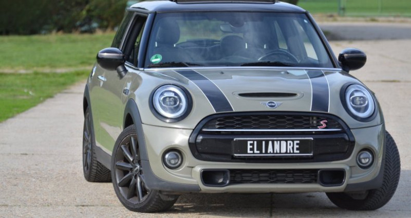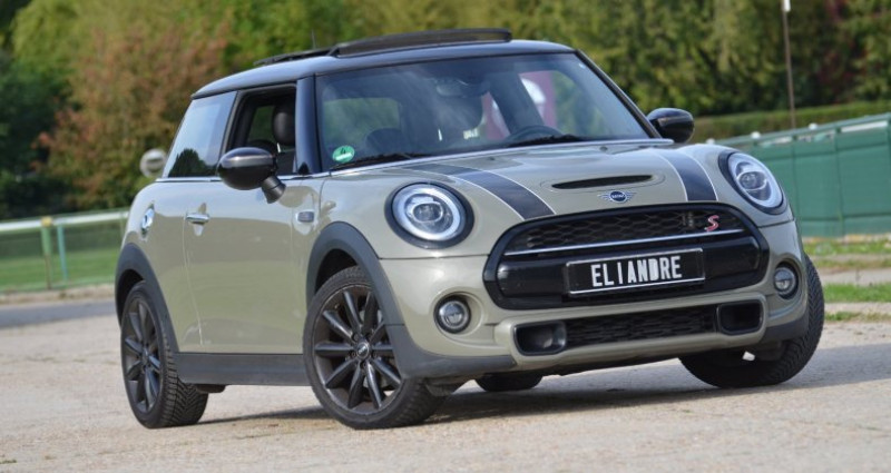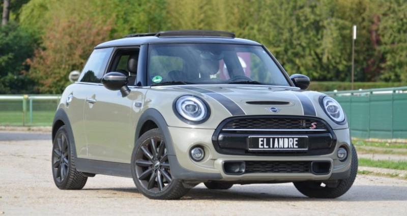 Mini Cooper S Coupé 192 ch livrée neuve en 06/2020 par Mini Paris, Gris Emerald métallisé, sellerie cuir Lounge Black, finition Greenwich incluant toit ouvrant panoramique, jantes alu noires 17'', boite automatique avec palettes au volant, voiture en parfait état
