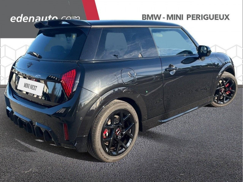 2 Portes-gobelets sur la console centrale / 3ème feu de stop LED intégré au spoiler AR / 4 places / Accès confort avec Digital Key - Ouverture et fermeture (des portes et du hayon) et démarrage sans clé - Eclairage d'accueil lorsque le conducteur se situe à 2,5 m du véhicule - Déverrouillage automatique à partir de 0,5 m du véhicule - Verrouillage automatique lorsque le conducteur s'éloigne du véhicule, à partir de 3 m / Active Guard -Avertissement de franchissement de ligne avec impulsion sur la direction (>70km/h) -Avertisseur de collision frontale avec intervention de freinage (3-210km/h) -Avertisseur de présence d'un véhicule avec action sur les freins (3-35km/h) -Avertisseur présence piéton/cycliste lors d'un virage en intersection (3-35km/h) -Assistance de limitation de vitesse -Assistance d'évitement en cas de risque de collision frontale / Affichage Tête Haute HUD Couleur - Affichage tête haute extensible - Activation via l'écran central - Affichage des informations de divertissement, des avertissements et de la vitesse de conduite - Affichage des informations de navigation et de l'assistant de conduite en fonction de l'équipement - La hauteur, la rotation et la luminosité de l'affichage ainsi que les informations affichées peuvent être réglées via le menu / Airbag entre les deux sièges AV en cas de collision latérale / Airbags de tête à l'AV et aux places latérales AR / Alarme antivol / Appel d'Urgence Intelligent (durée de vie de la voiture) Appel automatique vers le centre d'assistance MINI en cas d'accident, Touche SOS pour Appel d'Urgence manuel, Les données importantes sont automatiquement transmises aux secours (identification et localisation de la voiture, nombre de passagers à bord, statuts des airbags), Ce service utilise la carte SIM montée d'usine et ne requiert pas l'utilisation du smartphone du client / Boîte de vitesses automatique à double embrayage à 7 rapports avec palettes au volant / Capteurs d'impact - Activation de l'airbag, des feux de détresse, de l'éclairage intérieur - Déverrouillage des portes - Activation de la borne batterie de sécurité / Carte SIM 4G LTE / Ceintures de sécuritéà 3 points à toutes les places / Ciel de pavillon anthracite / Clés (2) radiocommandées à mémorisation automatique des réglages "Personal Profile" / Clignotants LED intégrés aux feux de jour AV / Connectivité téléphone Bluetooth avec interface USB / Contour de calandre en noir brillant / Contour de vitres noir / Contrôle de stabilité dynamique (DSC) avec dotation élargie - Contrôle de freinage en courbe (CBC) - Contrôle automatique de la stabilité (ASC) - Contrôle dynamique des freins (DBC) - Stabilisation de remorque - Assistant dynamique de motricité (DTC) - Freinage de séchage - Assistant de démarrage en côte - ABS, Système anti blocage des roues / Désignation du modèle sur le hayon / Détecteur de pluie et allumage automatique des projecteurs / Double plancher de coffre / Drive Assist -Avertisseur d'angle mort (>20km/h avec voyant d'alerte et intervention sur la direction) -Avertisseur de risque de collision AR (déclenchement automatique des warning avec fréquence doublée) -Avertisseur de sortie (détecte les objets approchant (véhicule, cycliste) et alerte en cas d'ouverture de la portière) -Avertisseur de trafic transversal AR (Avertisseur en cas de circulation transversale, incrustation sur image caméra de recul, freinage automatique en cas de non réaction) / Eclairage de bienvenue / Eclairage de plaque d'immatriculation à LED / Ecrous de roues antivol / Equipement supplémentaires / Feux AR à LED intégrant les clignotants / Feux de route anti-éblouissement / Fonctionnalité "Follow Me Home" (éclairage d'accompagnement) : les feux de croisement restent allumé quelques instants / Frein de parking électromécanique avec fonction "Automatic Hold" / Freins sport JCW / Hotspot WiFi / Jantes alliage léger 17" John Cooper Works Sprint Spoke black Pneumatique 215/45 R17, 7Jx17, Noir / John Cooper Works sièges sport / Kit de mobilité - Bouteille de mastic pour pneumatiques, compresseur électrique 12 V / Kit éclairage Lampe de lecture intérieure à commande tactile et éclairage AV et AR, Éclairage ambiant de la console centrale, Eclairage coffre à bagages sur un côté / Kit Rangement - bac de rangement dans les portes AV avec porte-bouteille - compartiment de rangement central / Lève-vitres AV électrique avec commande par impulsion et sécurité enfants / Logo MINI AV et AR en noir brillant, logo JCW à l'AR / Mesure individuelle de pression des pneumatiques / MINI Interaction Unit avec écran OLED 240mm Technologie OLED, 240mm de diamètre, Nouveau système d'exploitation Operating System 9, MINI Intelligent Personal Assistant : le nouvel assistant personnel commandable par la voix ("Hey MINI"), pour aider le conducteur tout au long de son parcours, Remote Software Upgrade: mise à jour du logiciel de votre MINI à distance, Connectivité 4G LTE, Mise à jour pour les données de carte de navigation Over the Air (OtA), MINI Navigation / Moteur TwinPower Turbo essence 4 cylindres -Turbocompresseur - Valvetronic (modification de la profondeur d'ouverture des soupapes d'admission) - Double VANOS (système de distribution variable) - Injection haute pression - Filtre à particules / Notice d'utilisation de la voiture intégrée et carnet d'entretien électronique avec MINI Service History / Ordinateur de bord, Check-Control et indicateur de température extérieure / Pack M Pack S, Système Hi-Fi Harman Kardon / Park Assist - radars de stationnement AV et AR et de la Caméra de recul - Manoeuvres de stationnemment en créneau et en bataille facilitées par mesure automatique de l'écart entre deux voitures à une vitesse inférieure à 35 km/h - Fonction de freinage automatique (PDC actif) en marche AR en cas d'obstacle lors d'une manoeuvre de stationnement effectuée manuellement par 