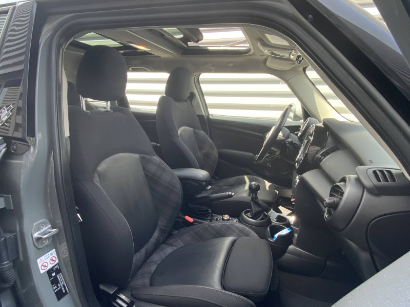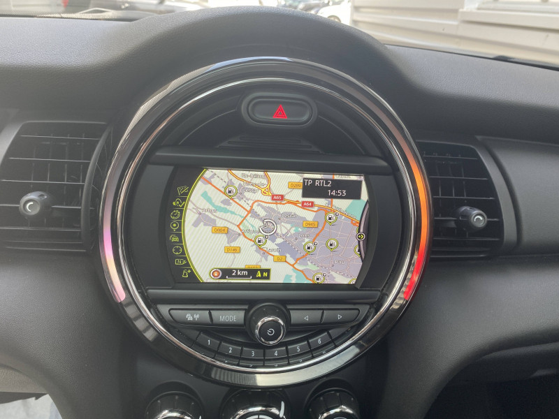Crash Sensor activation automatique en cas d'accident: déverrouillage des portes, éclairage intérieur, feux de détresse, coupure batterie et pompe à carburant / Détecteur de pluie et allumage automatique des projecteurs / Indicateur de pressions des 4 pneus et avertisseur automatique en cas de perte de pression d'au moins 25% sur un des pneus / Jantes alliage 7Jx17" (205/45 R17) design "Cosmos Spoke" noires / Pack Connected / Projecteurs Full LED avec feux de jour "Omega" / Toit ouvrant panoramique en verre / Verrouillage automatique des portes dès 16 Km/h / 2 HP et 2 woofers / 2ème clé radiocommandée / 3ème feu de stop / ABS, y compris assistance au freinage d'urgence et contrôle de freinage en courbe / Airbags latéraux AV, intégrés au dossier de siège AV / Autoradio MINI AM/FM: avec prises AUX-IN et port USB, écran 4 lignes / Badge Blackfriars sur l'insert passager / Badge Blackfriars sur les répétiteurs de clignotants / Badges Blackfriars sur les pilliers B / Baguettes de seuil de porte avec inscription de la motorisation façon métallique / Bandes décoratives Blackfriars spécifiques sur les pilliers C / Becquet AR de toit / Buses d'aération cerclées de chrome / Calandre au contour chromé avec lamelles noires / Ciel de pavillon Satellite Grey / Clignotants blancs / Colour Line Carbon Black / Contrôle Dynamique de stabilité DSC avec DTC et EDLC / Coques de rétroviseurs extérieures noires / Coques de rétroviseurs extérieurs couleur carrosserie / Ecrous de roues antivol / Edition Blackfriars / Feux de stop dynamiques / Fonction "Follow me home", éclairage d'accompagnement / Fonction profile: import/export des données et réglages véhicule / Fonction Start&Stop et démarrage sans clé / Fonction sécurité piéton avec capot actif / Freins à disques AV et AR ventilés à l'AV / Isofix sur les 2 sièges AR / Kit de réparation de pneus / Lève-vitres électriques AV et AR avec commande à impulsion à l'AV et protection anti-pincement / MINI Mobility System / Ordinateur de bord multifonctions / Ouverture et fermeture à distance des vitres et du TOE si équipé / Ouïes latérales noires avec répétiteurs de clignotants orange intégrés / Pare-chocs AV/AR dans la couleur de la carrosserie / Poignée d'ouverture de coffre teinte noir / Poignées de portes chromées / Poignées intérieures de portes chromées / Porte-boissons AV (x2) / Prise 12V sous la console centrale / Projecteurs AV et feux AR au contour chromé / Réglage électrique de la portée des projecteurs / Régulateur de vitesse avec fonction freinage / Sortie d'echappement simple côté gauche / Surveillance de l'éclairage extérieur / Système de maintenance intelligent Condition Based Service (CBS) / Teinte d'habitacle Carbon Black / Toit couleur carrosserie / Touches multifonctions sur le volant avec régulateur de vitesse / Trappe à carburant côté droit / Triangle de présignalisation avec kit de premiers secours / Verrouillage centralisé des portes, du coffre et de la trappe à carburant / Vitre AR chauffante avec essuie-glace / Volant 2 branches