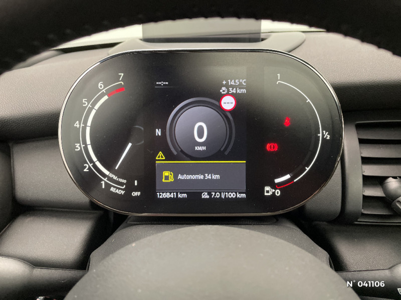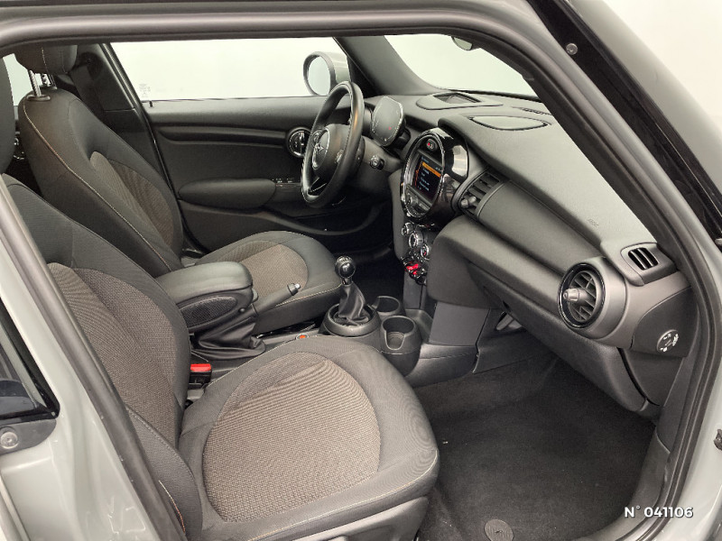 Trappe à carburant côté droit / Surveillance de l'éclairage extérieur / Poignée d'ouverture de coffre teinte noir / Sortie d'echappement simple côté gauche / Baguettes de seuil de porte avec inscription de la motorisation façon métallique / 2HP et 2 woofers / Ouverture et fermeture à distance des vitres et du TOE si équipé / Verrouillage automatique des portes dès 16 Km/h / Ordinateur de bord multifonctions / Becquet AR de toit / Ciel de pavillon Satellite Grey / Prise 12V sous la console centrale / Teinte d'habitacle Carbon Black / Fixations ISOFIX à l'AV avec désactivation de l'airbag passager / Régulateur de vitesse avec fonction freinage / Jantes alliage 5.5Jx15" (175/65 R15) design "Heli Spoke" / Sellerie Tissu "Firework" / Boîte de vitesses manuelle à 6 rapports / Freins à disques à l'AV (ventilés) / Instrumentation digitale avancée / Ecran central 6,5" avec Pack Connected Media / Poignées de portes chromées / Poignées intérieures de portes chromées / Toit couleur carrosserie / Deuxième clé radiocommandée / Clignotants blancs / Fonction "Follow me home", éclairage d'accompagnement / Fonction profile: import/export des données et réglages véhicule / Fonction Start/Stop et démarrage sans clé / 2ème clé radiocommandée / Réglage électrique de la portée des projecteurs / Vitre AR chauffante avec essuie-glace / Airbags latéraux AV, intégrés au dossier de siège AV / ABS, y compris assistance au freinage d'urgence et contrôle de freinage en courbe / Indicateur de pressions des 4 pneus et avertisseur automatique en cas de perte de pression d'au moins 25% sur un des pneus / Isofix sur les 2 sièges AR / TeleServices / Pack Connected Media / Remote Services / Ouïes latérales noires avec répétiteurs de clignotants intégrés / Autoradio MINI AM/FM: avec prises AUX-IN et port USB / Feux AR à LED avec design Union Jack / Détecteur de pluie et allumage automatique des projecteurs / Touches multifonctions sur le volant avec régulateur de vitesses / Réglage en hauteur du siège passager AV / 3ème feu stop / Pare-chocs AV et AR dans la couleur de la carrosserie / Verrouillage centralisé des portes, du coffre et de la trappe à carburant / Colour Line Carbon Black / Autoradio MINI Visual Boost / MINI Connected / Calandre au contour chromé avec lamelles noires / Projecteurs AV et feux AR au contour chromé / Feux de stop dynamiques / Système de maintenance intelligent Condition Based Service / Porte-boissons AV (2) / Lève-vitres électriques AV et AR avec commande à impulsion à l'AV et protection anti-pincement / Triangle de présignalisation avec kit de premiers secours / Tuner DAB / Contrôle Dynamique de stabilité DSC avec DTC et EDLC / Crash Sensor activation automatique en cas d'accident: déverrouillage des portes, éclairage intérieur, feux de détresse, coupure batterie et pompe à carburant / Fonction sécurité piéton avec capot actif / Poignée d'ouverture du hayon noire