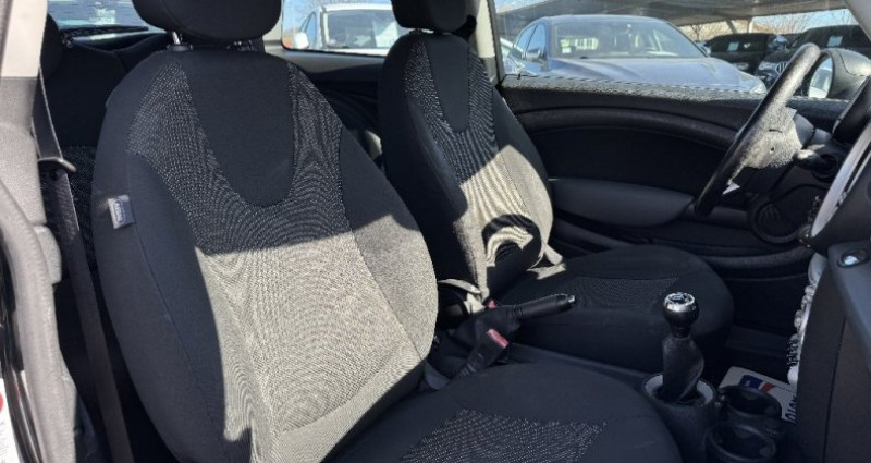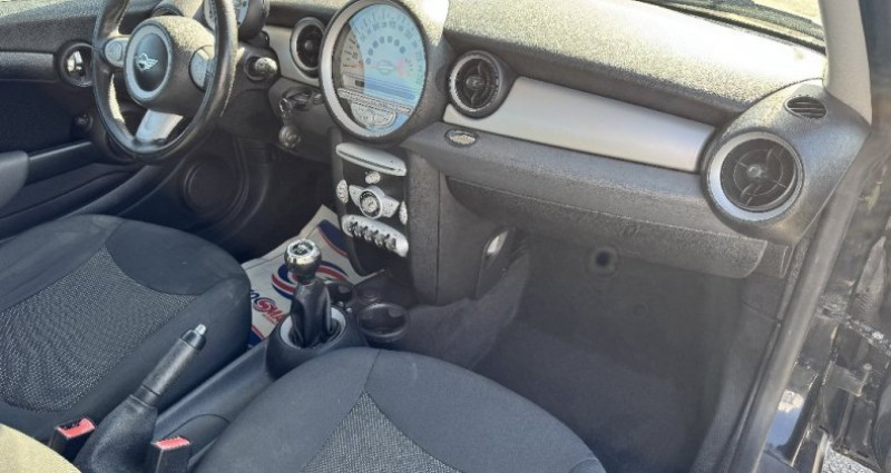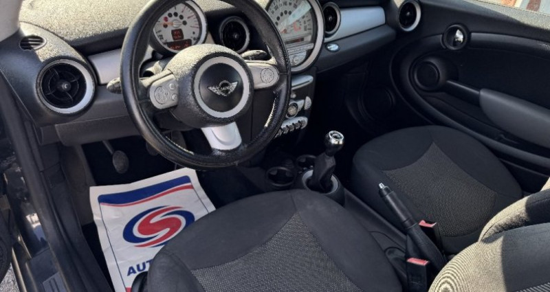 Cylindrée : 1560 cm3 Nb. Vitesse : 6 - 3ème feu de stop - ABS et assistance de freinage - Accoudoir central AV (en combinaison avec l'option préparation pour téléphone portable Bluetooth avec interface Audio USB) - Airbag conducteur et passager - Airbags de tête - Airbags latéraux AV - Anti-démarrage électronique - Baguettes de seuils de portes avec inscription du modèle - Banquette AR 2 places - Banquette AR rabattable 50/50 - Barre anti-roulis AV et AR - Barres de calandre noir - Barres de calandre noir mat - Boîte manuelle 6 rapports - Bouton de démarrage 'Start/Stop' - Car Jack (Cric) - CBC (Contrôle du freinage en courbe) - Compteur de vitesse central gradué jusqu'à 260 km/h - Contour chromé des projecteurs AV et des feux AR - Contrôle Dynamique de stabilité DSC - Coques de rétroviseurs extérieurs noir mat - Coques de rétroviseurs noir mat - Direction à assistance électrique variable en fonction de la vitesse - Dossiers de banquette AR rabattables 50/50 - Filtre à particules - Fonction d'arrêt et de redémarrage automatique du moteur - Freins à disques AV et AR ventilés à l'AV - Indicateur de changement de rapport - Indicateur de perte de pression des pneumatiques RPA - Inserts décoratifs Fine White Silver laqué argent - ISOFIX : Ancrages normalisés pour sièges enfants - Jantes en acier 5.5Jx15' avec couvre moyeu (sans enjoliveur) - Lève-vitres et rétroviseurs extérieurs électriques - MINI Mobility System - Pare-chocs AV/AR dans la couleur de la carrosserie - Partie inférieure du tableau de bord et accoudoir de portes en plastique dur couleur Dark Grey - Poignée d'ouverture du coffre noir mat - Poignées de portes chromées - Poignées intérieures de portes chromées - Porte-gobelets AV et AR - Prise 12V entre les porte-gobelets AV - Radio MINI CD avec prise Aux-In et 6 HP - Sellerie Tissu Cosmos - Siège conducteur réglable en hauteur - Sortie d'échappement à droite (Chromée) - Système d'accès aux places AR Easy-Entry - Système de récupération de l'énergie au freinage - Teinte de carrosserie unie - Toit couleur carrosserie - Touches multifonctions sur le volant avec régulateur de vitesses (en combinaison avec l'option préparation pour téléphone portable Bluetooth avec interface Audio USB) - Triangle de présignalisation et trousse à pharmacie - Verrouillage automatique des portes dès 15 Km/h environ - Verrouillage centralisé des portes, du coffre et de la trappe à carburant - Volant 2 branches - Volant Cuir Sport 3 branches (en combinaison avec l'option préparation pour téléphone portable Bluetooth avec interface Audio USB) - Volant réglable en hauteur et en profondeur