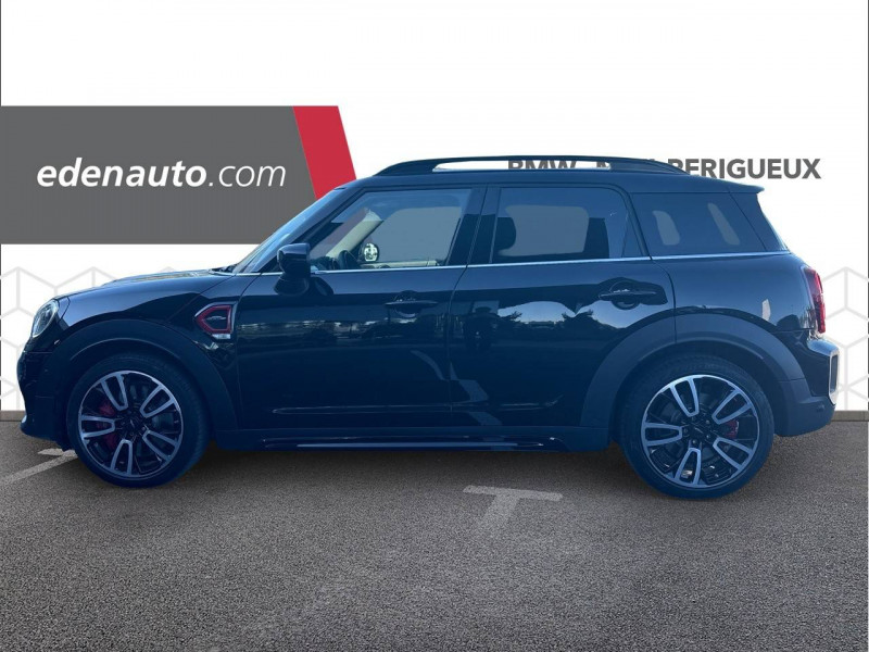 2HP de graves sous les sièges AV / 3ème feu stop à LED dans le spoiler de toit / 4 anneaux d'arrimage dans le coffre / 4HP de médiums dans les portes AV/AR / Airbags de tête pour les 4 places extérieures / Alarme antivol / Apple CarPlay à durée illimitée / Avertisseur sonore / Baguette en chrome sur le pourtour inférieur de toutes les vitres / Boîte de vitesses automatique Sport à 8 rapports avec palettes au volant / Cerclage de chrome avec structure alvéolée en Schwarz mat e logo John Cooper Works Pourtour intérieur de la bordure de calandre en Chili Red. Ouïe d'entrée d'air supplémentaire dans la partie inférieure de la calandre / Ciel de pavillon anthracite / Clignotants blancs / Colour Line Carbon Black / Comprend instrument central avec anneau à LED / Connectivité avancée et recharge sans fil par induction / Coques de rétroviseurs dans la teinte de la carrosserie / Countryman en lettres uniques chromées au centre au hayon, désignation de la motorisation / DAB Tuner / Détecteur de pluie et allumage automatique des projecteurs / Dossier de banquette AR, rabattable en trois parties 40:20:40 / Eclairage de la boîte à gants à LED (blanc) / Eclairage intérieur et liseuses à LED à l'AV/à l'AR (blanc) / Ecrous de roues antivol / Embout d'echappement biseauté en acier inoxydable poli / Encadrement de Sidescuttle Chili Red avec logo "Mini JCW" rouge et grille nid d'abeille en schwarz / Feux AR à LED avec design Union Jack / Feux de stop dynamiques / Fixation ISOFIX AV avec désactivation de l'airbag passager AV / Frein à main électrique / Indicateur de pressions des 4 pneus et avertisseur automatique en cas de perte de pression d'au moins 25% sur un des pneus / Inserts décoratifs Piano Black / Instrumentation digitale avancée / Jantes en alliage léger 18'' design "John Cooper Works Grip Spoke Black" 7,5Jx18" et pneumatiques 225/50 R18 / Kit de réparation de pneus / Kit Eclairage / Kit Rangement / Kit visibilité (comprend pare-brise chauffé) / MINI Connected / MINI Excitement package / MINI Safety (Assistance à la conduite) / Nouvelle instrumentation digitale avancée / Ordinateur de bord multifonctions / Performance Control / Poignée de hayon en piano black / Poignées de portes en chrome / Poignées intérieures de portes chromées / Points d'ancrage pour jusqu'à deux sièges enfants ISOFIX sur la banquette arrière / Porte-boissons (2) / Pourtour intérieur de la bordure de calandre en Chili Red / Prise 12 V dans la console centrale AV / Projecteurs Full LED à faisceaux adaptatifs à fond noir / Réglage électrique des sièges avec fonction mémoire / Réglage en hauteur du siège passager AV / Remote Services (3 ans) / Rétroviseur intérieur anti-éblouissement électrochrome / Rétroviseurs rabattable électriquement et fonction anti-éblouissement côté conducteur / RTTI (Info Trafic en temps réel, 3 ans) / Sidescuttle en noir, avec clignotant blanc / Sièges AV Bacquet John Cooper Works / Sièges AV Sport John Cooper Works avec Sellerie Tissu/Dinamica / Sortie d'echappement simple côté gauche avec finition chromée / Spoiler AR / Suspension sport / Système de haut-parleurs Hifi Harman/Kardon / Système de manoeuvres automatiques avec radars de stationnement AV/AR / Système de navigation MINI avec écran tactile 8,8" / Tapis de sol en velours / TeleServices / Toit ouvrant panoramique en verre / Touches multifonctions sur le volant avec régulateur de vitesses / Triangle de présignalisation / Tuner DAB / Volant Sport gainé cuir Nappa
