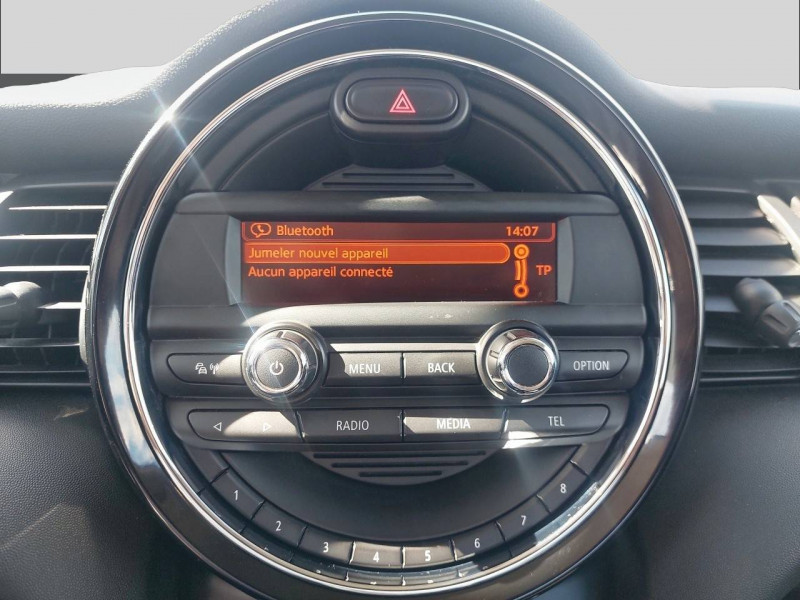2ème clé radiocommandée / 2 HP et 2 woofers / 3ème feu de stop / Autoradio MINI Boost AM/FM avec prises Aux-in et Port USB écran 4 lignes, 4HP et 2 woofers / Baguettes de seuils de portes avec inscription du modèle / Becquet AR de toit / Boîte de vitesses manuelle à 6 rapports / Buses d'aération cerclées de chrome / Calandre au contour chromé avec lamelles noires / Ciel de pavillon Satellite Grey / Colour Line Carbon Black / Contrôle du freinage en courbe CBC / Coques de rétroviseurs extérieures noires / Crash Sensor activation automatique en cas d'accident: déverrouillage des portes, éclairage intérieur, feux de détresse, coupure batterie et pompe à carburant / DTC Dynamic Traction Control avec fonction EDLC / Feux de stop dynamiques / Fonction "Follow me home", éclairage d'accompagnement / Fonction profile: import/export des données et réglages véhicule / Fonction sécurité piéton avec capot actif / Fonction Start&Stop et démarrage sans clé / Freins à disques AV et AR ventilés à l'AV / Indicateur de perte de pression des pneumatiques RPA / ISOFIX : Ancrages normalisés pour sièges enfants sur les 2 sièges AR / Jantes en acier 5,5Jx15" avec pneus 175/65 R15 et enjoliveur / Kit de réparation de pneus / Lève-vitres électriques AV avec commande à impulsion et protection anti-pincement / MINI Mobility System / Ordinateur de bord multifonctions / Ouïes latérales noires avec répétiteurs de clignotants orange intégrés / Ouverture et fermeture à distance des vitres / Pare-chocs AV/AR dans la couleur de la carrosserie / Poignée d'ouverture du hayon noire / Poignées de portes chromées / Poignées intérieures de portes chromées / Porte-boissons AV (x2) / Prise 12V sous la console centrale / Projecteurs AV et feux AR au contour chromé / Réglage électrique de la portée des projecteurs / Sellerie Tissu "Firework" / Sortie d'echappement simple / Surveillance de l'éclairage extérieur / Système d'accès aux places AR Easy-Entry / Système de maintenance intelligent Condition Based Service (CBS) / Teinte d'habitacle Carbon Black / Toit couleur carrosserie / Trappe à carburant côté droit / Triangle de présignalisation avec kit de premiers secours / Verrouillage automatique des portes dès 16 Km/h / Verrouillage centralisé des portes, du coffre et de la trappe à carburant / Vitre AR chauffante avec essuie-glace / Volant 2 branches