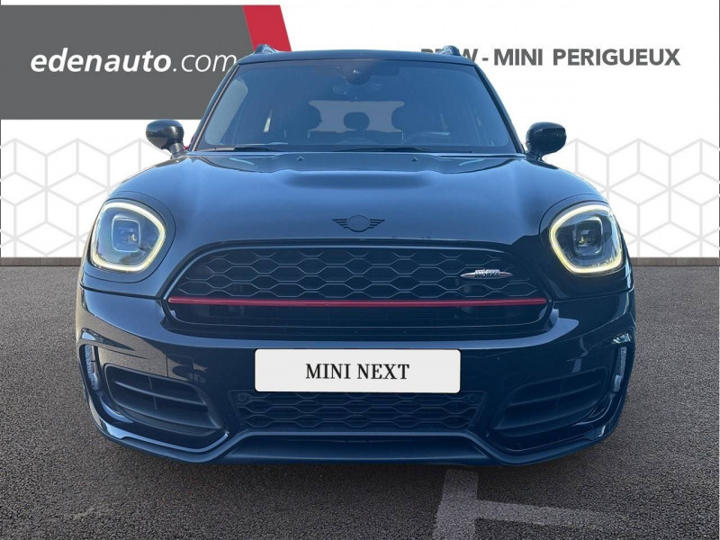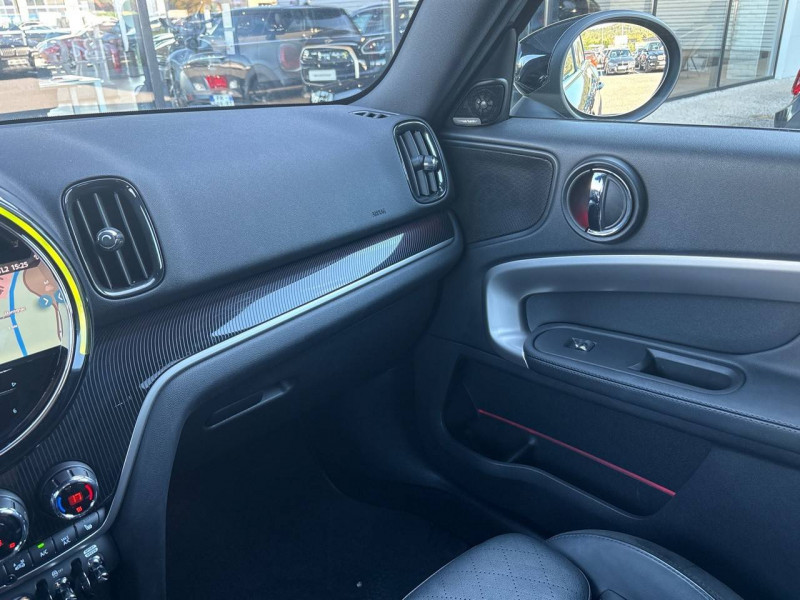 2HP de graves sous les sièges AV / 3ème feu stop à LED dans le spoiler de toit / 4 anneaux d'arrimage dans le coffre / 4HP de médiums dans les portes AV/AR / Airbags de tête pour les 4 places extérieures / Alarme antivol / Apple CarPlay à durée illimitée / Avertisseur sonore / Baguette en chrome sur le pourtour inférieur de toutes les vitres / Boîte de vitesses automatique Sport à 8 rapports avec palettes au volant / Cerclage de chrome avec structure alvéolée en Schwarz mat e logo John Cooper Works Pourtour intérieur de la bordure de calandre en Chili Red. Ouïe d'entrée d'air supplémentaire dans la partie inférieure de la calandre / Ciel de pavillon anthracite / Clignotants blancs / Colour Line Carbon Black / Comprend instrument central avec anneau à LED / Connectivité avancée et recharge sans fil par induction / Coques de rétroviseurs dans la teinte de la carrosserie / Countryman en lettres uniques chromées au centre au hayon, désignation de la motorisation / DAB Tuner / Détecteur de pluie et allumage automatique des projecteurs / Dossier de banquette AR, rabattable en trois parties 40:20:40 / Eclairage de la boîte à gants à LED (blanc) / Eclairage intérieur et liseuses à LED à l'AV/à l'AR (blanc) / Ecrous de roues antivol / Embout d'echappement biseauté en acier inoxydable poli / Encadrement de Sidescuttle Chili Red avec logo "Mini JCW" rouge et grille nid d'abeille en schwarz / Feux AR à LED avec design Union Jack / Feux de stop dynamiques / Fixation ISOFIX AV avec désactivation de l'airbag passager AV / Frein à main électrique / Indicateur de pressions des 4 pneus et avertisseur automatique en cas de perte de pression d'au moins 25% sur un des pneus / Inserts décoratifs Piano Black / Instrumentation digitale avancée / Jantes en alliage léger 18'' design "John Cooper Works Grip Spoke Black" 7,5Jx18" et pneumatiques 225/50 R18 / Kit de réparation de pneus / Kit Eclairage / Kit Rangement / Kit visibilité (comprend pare-brise chauffé) / MINI Connected / MINI Excitement package / MINI Safety (Assistance à la conduite) / Nouvelle instrumentation digitale avancée / Ordinateur de bord multifonctions / Performance Control / Poignée de hayon en piano black / Poignées de portes en chrome / Poignées intérieures de portes chromées / Points d'ancrage pour jusqu'à deux sièges enfants ISOFIX sur la banquette arrière / Porte-boissons (2) / Pourtour intérieur de la bordure de calandre en Chili Red / Prise 12 V dans la console centrale AV / Projecteurs Full LED à faisceaux adaptatifs à fond noir / Réglage électrique des sièges avec fonction mémoire / Réglage en hauteur du siège passager AV / Remote Services (3 ans) / Rétroviseur intérieur anti-éblouissement électrochrome / Rétroviseurs rabattable électriquement et fonction anti-éblouissement côté conducteur / RTTI (Info Trafic en temps réel, 3 ans) / Sidescuttle en noir, avec clignotant blanc / Sièges AV Bacquet John Cooper Works / Sièges AV Sport John Cooper Works avec Sellerie Tissu/Dinamica / Sortie d'echappement simple côté gauche avec finition chromée / Spoiler AR / Suspension sport / Système de haut-parleurs Hifi Harman/Kardon / Système de manoeuvres automatiques avec radars de stationnement AV/AR / Système de navigation MINI avec écran tactile 8,8" / Tapis de sol en velours / TeleServices / Toit ouvrant panoramique en verre / Touches multifonctions sur le volant avec régulateur de vitesses / Triangle de présignalisation / Tuner DAB / Volant Sport gainé cuir Nappa