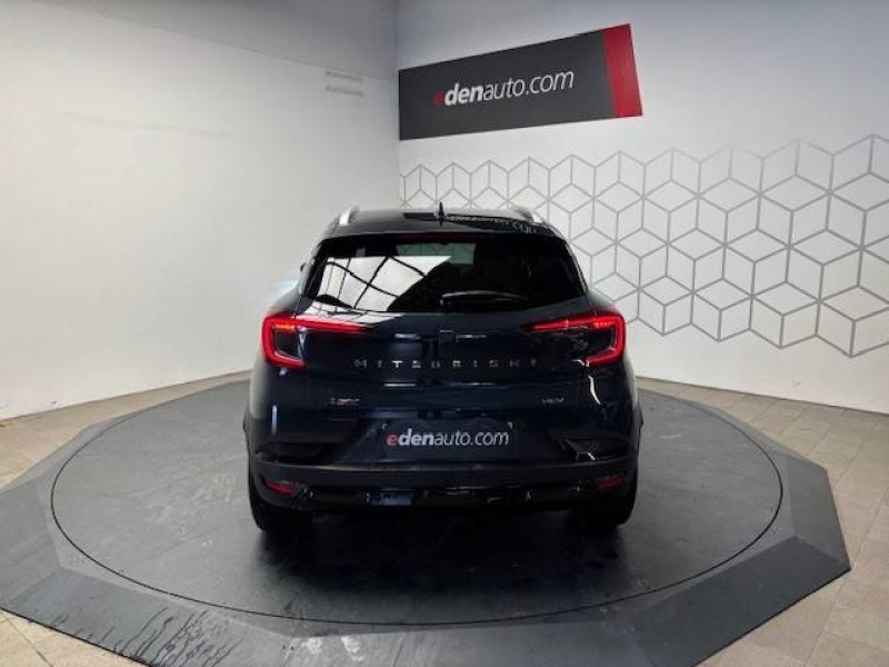 Aide au maintien dans la voie (LDP) / Airbags frontaux conducteur et passager (airbag passager déconnectable) / Antenne type aileron de requin / Antiblocage des roues (ABS) avec répartiteur électronique de la force de freinage (EBD) et aide au freinage d'urgence (BAS) / Bandeau de planche de bord noir brillant / Capteur de luminosité (allumage automatique des feux de croisement / Ceinture de sécurité AR 3 points (ELR) (x3) / Ceinture de sécurité AV 3 points (ELR) avec prétensionneurs et limiteur de force (x2) / Commutation automatique entre feux de route et feux de croisement (AHB) / Compteurs numériques avec écran couleur personnalisable 10" / Coques de rétroviseurs extérieurs noires / Couvre-bagages rigide / Décors de bandeaux de pare-chocs AV et AR noirs brillants / Feux AR avec signature lumineuse à LED / Fixations ISOFIX aux places latérales AR (x2) et passager AV (x1) / Frein de parking électrique avec fonction "Auto Hold" - Fonction de maintien automatique du frein de parking / Joncs de calandre noirs brillants avec inserts chromés / Lignes de vitrage latéral chromées / MITSUBISHI Multi-Sense : système de gestion des modes de conduite, de personnalisation de l'affichage et de l'éclairage d'ambiance / Peinture extérieure bi-ton / Plaques de protection AV et AR noire brillantes / Poignées de portes couleur carrosserie / Protections inférieures de portes noires avec insert chromé / Rails de toit gris argentés / Rétroviseur intérieur électrochromatique (fonction jour/nuit automatique) / Sellerie TEP et tissu Tissu enduit de plastique / Smartphone-link Display Audio 4.0 (SDA) : système multimédia connecté avec écran tactile 9,3" compatible Android Auto et Apple CarPlay / Spoiler AR / Système audio avec radio AM/FM, ports USB (x2) et 6 haut-parleurs / Système de réduction de vitesse avant collision avec système de détection des piètons et cyclistes (FCM) / Système d'ouverture des portes et démarrage sans clé (KOS) / Vitres latérales AR et lunette AR surteintées / Volant 3 branches multifonction gainé de cuir