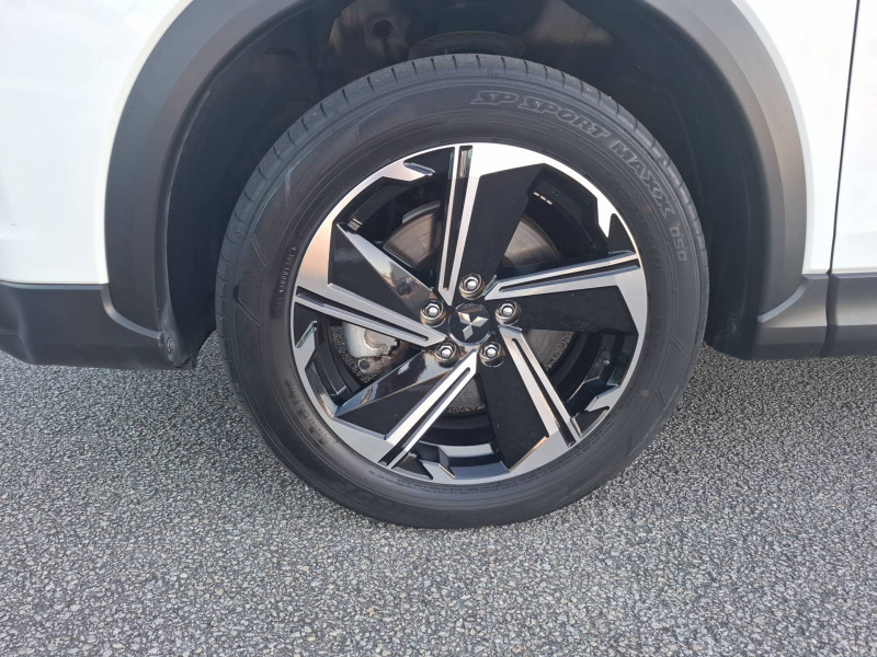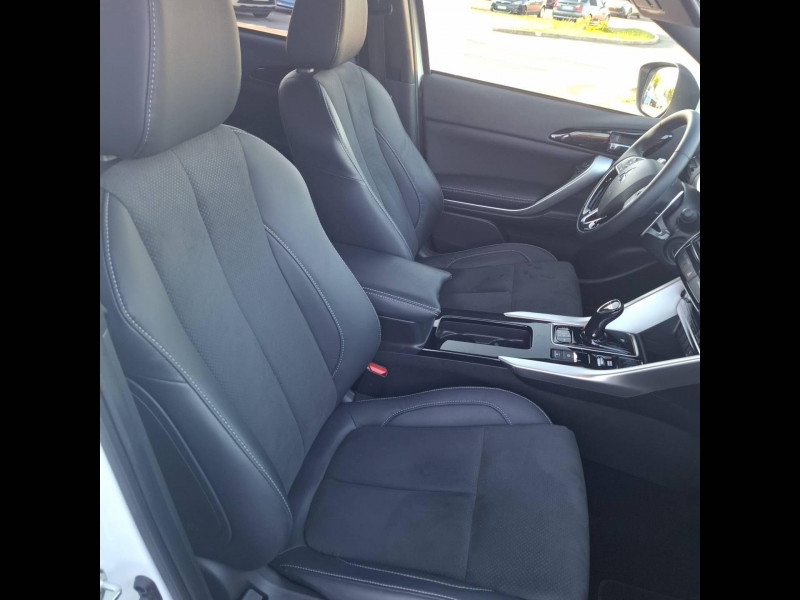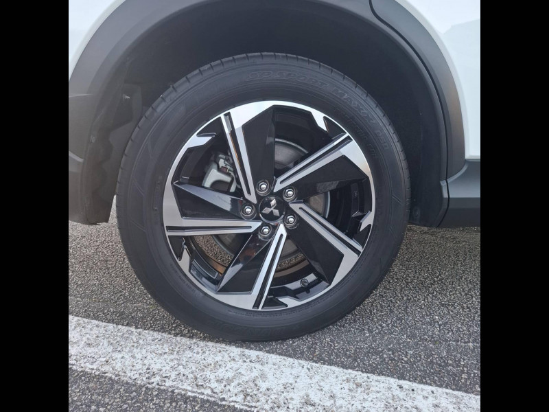 Airbags frontaux conducteur et passager (airbag passager déconnectable) / Antenne type aileron de requin / Bandeaux de pare-chocs AV/AR gris argentés / Banquette AR inclinable et rabattable (60/40) / Bas de caisse noirs grainés / Câble de recharge type 2 - 10 A (6 m) / Capteur de pluie et de luminosité (allumage automatique des feux de croisement et déclenchement automatique des essuie-glaces AV) / Ceinture de sécurité AR 3 points (ELR) (x3) / Ceintures de sécurité AV avec ELR (enrouleur à blocage électronique), prétensionneurs et limiteurs d'effort. / Ciel de pavillon noir / Commutation automatique entre feux de route et feux de croisement (AHB) / Compteurs analogiques avec ordinateur de bord àécran couleur LCD / Console centrale AV avec porte-gobelets / Contrôle actif de stabilité (ASC) et de traction (TCL) / Coques de rétroviseurs, poignées de portes et de coffre extérieures couleur carrosserie / Couvre-bagages à enrouleur / Détecteur d'accélération involontaire (UMS) / Eclairage d'accueil extérieur et fonction "Coming Home" / Eclairage intérieur à LED (porte-gobelets AV et rangement) / Eclairage intérieur (plafonniers et coffre) / Espace de rangement sous le plancher de coffre / Feux AR avec signature lumineuse à LED / Fonction de recharge rapide (CHAdeMO) / Frein de parking électrique avec fonction "Auto Hold" - Fonction de maintien automatique du frein de parking / Garnissage de passages de roues noir / Joncs de calandre noirs brillants / Lignes de vitrage latéral chromées / MITSUBISHI Remote Control système de contrôle du véhicule à distance via application dédiée (charge de la batterie, climatisation, etc.) / Pare-soleils avec miroirs de courtoisie éclairés et porte-ticket (x2) / Plaques de protection AV et AR noires grainées / Poignées de maintien rétractables (x4) / Poignées de portes intérieures chromées / Prise auxiliaire 12 V / Projecteurs à LED avec réglage automatique de la portée et lave-phares / Protections inférieures de portes noires grainées / Rails de toit noirs / Rangement avec porte-bouteille intégré dans les portières AV et AR (x4) / Rétroviseur intérieur à fonction jour/nuit automatique / Sélecteur de modes de conduite tout-terrain (S-AWC 4WD) / Sellerie TEP et suédine / Siège conducteur réglable électriquement (4 voies) / Smartphone-link Display Audio 2.0 (SDA) système multimédia connecté avec écran tactile 8" compatible Android Auto et Apple CarPlay / Spoiler de toit couleur carrosserie / Système audio avec radio MW/FM, ports USB (x2) et 6 haut-parleurs / Système d'alerte acoustique du véhicule (AVAS) / Système de récupération d'énergie au freinage avec palettes au volant / Système de réduction de vitesse avant collision avec système de détection des piètons (FCM) / Système de téléphonie Bluetooth / Système d'ouverture des portes et démarrage sans clé (KOS) / Volant 3 branches multifonction gainé de cuir