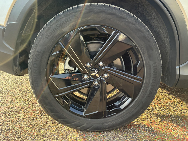 Capteur de pluie et de luminosité (allumage automatique des feux de croisement et déclenchement automatique des essuie-glaces AV) / Commutation automatique entre feux de route et feux de croisement (AHB) / Eclairage intérieur à LED (poignées de portes AV et espaces de rangement) / Feux AR avec signature lumineuse à LED / Frein de parking électrique avec fonction "Auto Hold" - Fonction de maintien automatique du frein de parking / Jantes alliage noire 18"x 7,0J, 225/55R18 / Projecteurs à LED avec réglage automatique de la portée et lave-phares / Rétroviseur intérieur à fonction jour/nuit automatique / Volant 3 branches multifonction gainé de cuir / Accoudoir central AR avec porte-gobelets intégrés / Airbags frontaux conducteur et passager (airbag passager déconnectable) / Alerte de circulation transversale AR (RCTA) / Antenne type aileron de requin / Bandeaux de pare-chocs AV/AR noirs brillants / Banquette AR inclinable et rabattable (60/40) / Bas de caisse couleur carrosserie / Ceinture de sécurité AR 3 points (ELR) (x3) / Ceintures de sécurité AV avec ELR (enrouleur à blocage électronique), prétensionneurs et limiteurs d'effort. / Ciel de pavillon noir / Compteurs analogiques avec ordinateur de bord àécran couleur LCD / Console centrale AV avec porte-gobelets / Contrôle actif de stabilité (ASC) et de traction (TCL) / Coques de rétroviseurs, poignées de portes et de coffre extérieures couleur carrosserie / Couvre-bagages à enrouleur / Câble de recharge type 2 - 10 A (6 m) / Détecteur d'accélération involontaire (UMS) / Eclairage d'accueil extérieur et fonction "Coming Home" / Eclairage intérieur (plafonniers et coffre) / Espace de rangement sous le plancher de coffre / Fonction de recharge rapide (CHAdeMO) / Garnissage de passages de roues noir / Joncs de calandre noirs brillants / Lignes de vitrage latéral chromées / Pare-soleils avec miroirs de courtoisie éclairés et porte-ticket (x2) / Plaques de protection AV et AR noire brillantes / Poignées de maintien rétractables (x4) / Poignées de portes intérieures chromées / Prise 12 V au pied de la console centrale AV / Prise d'alimentation 1 500 W (AC 220 - 240 V) / Protections inférieures de portes noires grainées / Rails de toit noirs / Rangement avec porte-bouteille intégré dans les portières AV et AR (x4) / Siège conducteur réglable électriquement (4 voies) / Smartphone-link Display Audio 2.0 (SDA) système multimédia connecté avec écran tactile 8" compatible Android Auto et Apple CarPlay / Spoiler de toit couleur carrosserie / Système audio premium MITSUBISHI Power Sound (MPSS) avec radio MW/FM ports USB (x2) et 8 haut-parleurs / Système d'alerte acoustique du véhicule (AVAS) / Système d'ouverture des portes et démarrage sans clé (KOS) / Système de récupération d'énergie au freinage avec palettes au volant / Système de réduction de vitesse avant collision avec système de détection des piètons (FCM) / Système de surveillance d'angle mort (BSW) avec assistance au changement de voie (LCA) / Système de téléphonie Bluetooth / Sélecteur de modes de conduite tout-terrain (S-AWC 4WD) / Volant chauffant