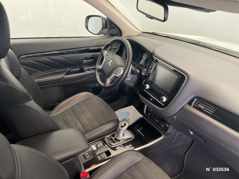 Contrôle actif de stabilité (ASC) et de traction (TCL) / Frein de parking électrique avec fonction "Auto Hold" - Fonction de maintien automatique du frein de parking / Antenne type aileron de requin / Becquet AR couleur carrosserie / Moulures de vitres latérales chromées / Moulures de protection de bas de portes chromées / Rails de toit couleur argent / Espace de rangement sous le plancher de coffre / Console centrale AV avec porte-gobelets / Rangement porte-lunettes dans le plafonnier AV / Système de pré-chauffage / climatisation du véhicule à distance / Sellerie Comfort Tec (C-TEC) en TEP et suédine / Projecteurs halogènes avec lave-phares / Projecteurs bi-LED avec réglage automatique de la portée et lave-phares / Points d'ancrage ISOFIX aux places passager AV (x1) et latérales AR (x2) / Prises d'alimentation USB (x2) / Super-All Wheel Control (S-AWC) avec 3 modes de conduite : "Normal", "Lock" et "Snow" / Système audio LW/MW/FM avec 6 HP / Système de commande à distance du véhicule via application Mitsubishi Remote Control (niveau de charge des batteries, pré-chauffage et climatisation) / Banquette AR inclinable et rabattable (60/40) avec fonction plancher plat / Antiblocage des roue (ABS) avec répartiteur électronique de la force de freinage (EBD) / Accoudoir central AR avec porte-gobelets intégrés (x2) / Ceintures de sécurité AV 3 points à prétensionneur et limiteur de force réglables en hauteur (x2) / Fonction éclairage intelligent (commutation automatique entre feux de route et feux de croisement) (AHB) / Air conditionné automatique bi-zone vec filtre habitacle et aérateurs au places AR / Ceintures de sécurité AR 3 points (x3) / Ouverture et fermeture centralisée des portes / Rétroviseur intérieur à fonction jour/nuit automatique / Système d'ouverture des portes et démarrage sans clé (KOS) / Eclairage d'accueil extérieur et fonction "Coming Home" / Airbags frontaux conducteur et passager AV (airbag passager déconnectable) / Système d'alerte de circulation transversale AR (RCTA) / Système de récupération d'énergie au freinage avec palettes au volant / Bas de caisse couleur carrosserie / Réglage lombaire du sièges conducteur / Montants de portières noirs / Airbags rideaux pour la 1ère et 2nde rangée de sièges / Vitres latérales AR et lunette AR surteintées / Système multimédia connecté Smartphone-link Display Audio 2.0 (SDA) avec navigation intégrée et écran tactile 8", compatible Apple CarPlay et Android Auto / Vitres électriques avec temporisateur (avec fonction anti-pincement et commande de blocage des vitres côté conducteur) / Volant 4 branches multifonction gainé de cuir / Câble de recharge type 2 - 10 A (6 m) / Eclairage intérieur (plafonniers, places AV, boîte à gants et coffre) / Pare-soleils avec miroirs de courtoisie éclairés et porte-ticket (x2) / Grille de calandre chromée / Rétroviseurs extérieurs couleur carrosserie avec répétiteurs de clignotants intégrés / Couvre-bagages à enrouleur / Ordinateur de bord multi-information avec écran couleur LCD / Rangement avec porte-bouteille intégré dans les portières AV et AR (x4) / Système mains libres Bluetooth avec commandes au volant et reconnaissance vocale / Poignées de maintien rétractables (x4) / Signal d'arrêt d'urgence ESS / Système de recharge rapide des batteries / Système de chauffage électrique / Système de réduction de vitesse avant collision avec système de détection des piètons (FCM)