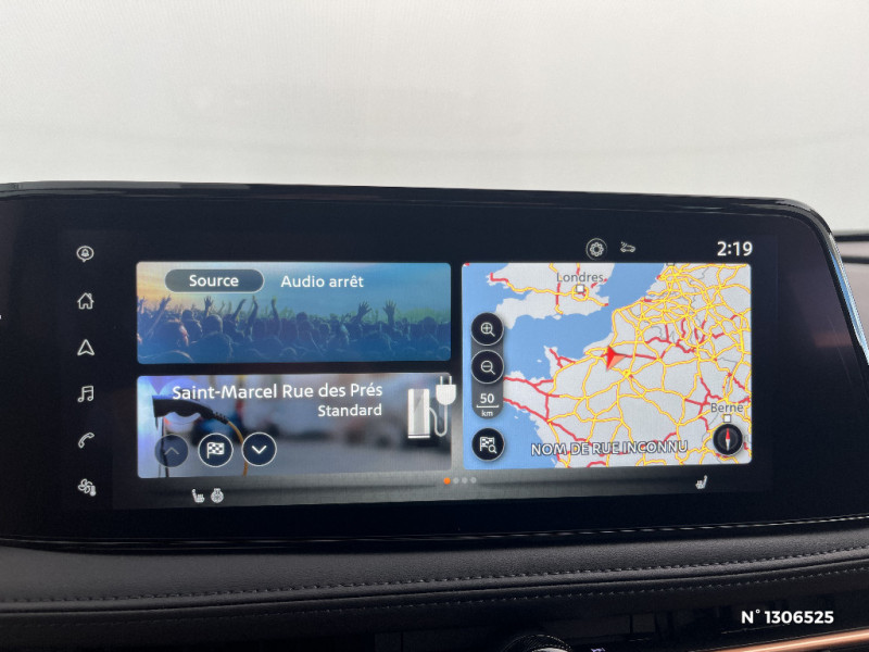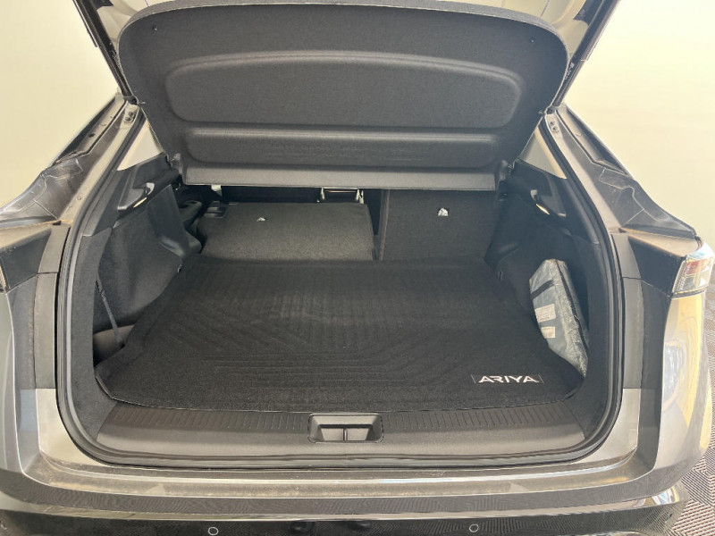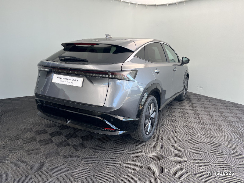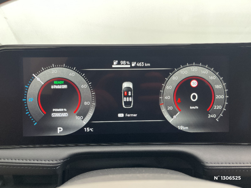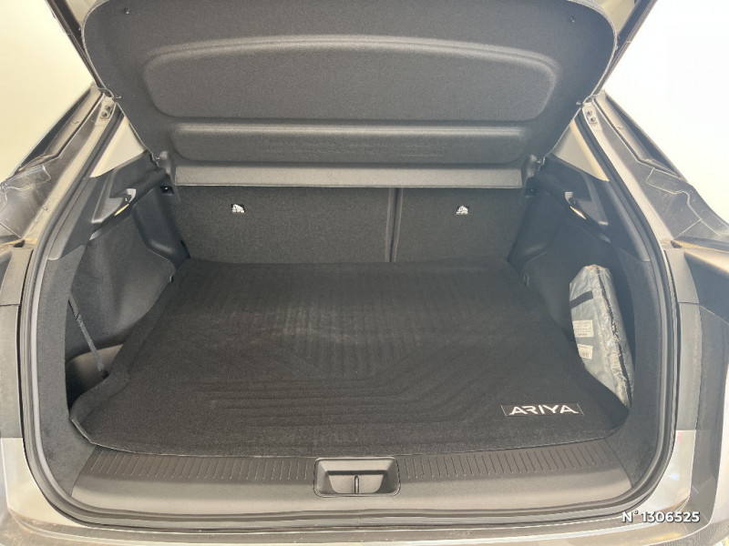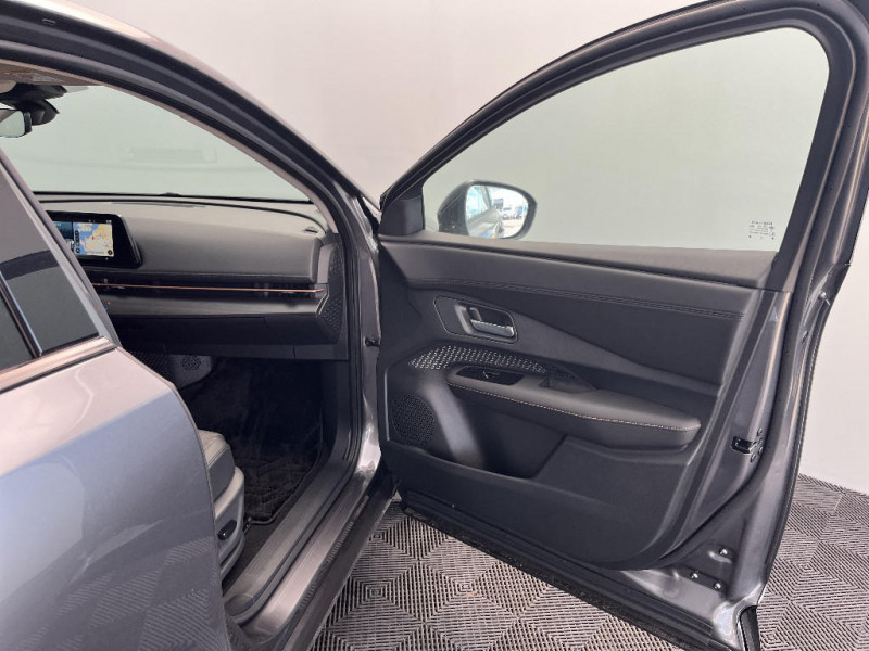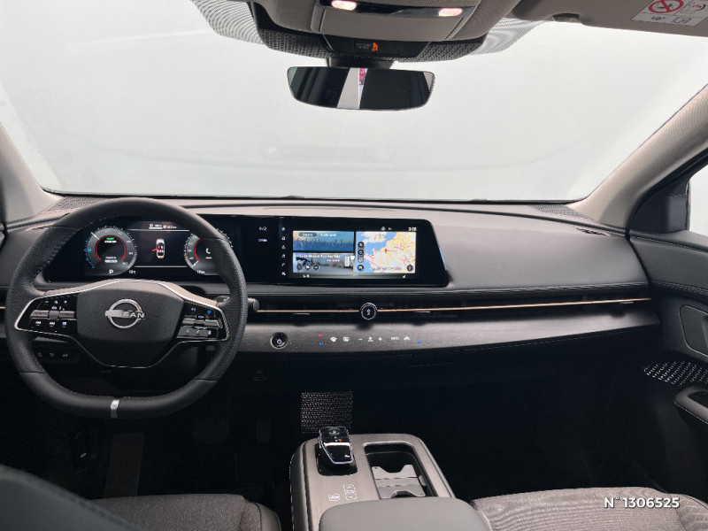 Rétroviseur intérieur électrochromatique / Sellerie mixte TEP/Tissu (Noir) / Sièges AV ajustables électriquement 6 voies / Système actif de gestion de la température de la batterie (réchauffement et refroidissement) / Système d'alerte anticollision AR intelligent avec détection des objets en mouvement / Système d'alerte prédictif anticollision frontale / Système d'avertissement acoustique du véhicule (AVAS) / Système de navigation NissanConnect avec écran tactile 12,3" : Live Traffic et cartes 3D, Navigation porte-à -porte, Recherche par Points d'Intérêt, Google Street View, Vue Satellite et Météo, Mise à jour des cartes et logiciels, Prix des carburants, Commandes vocales avancées avec Amazon Alexa® / ABS (système antiblocage des freins) / Antenne aileron de requin / Arches latérales effet "chrome satiné" / Assistant Personnel Virtuel / Badge Nissan Charge offert pendant 1 an / Bandeau de feux AR LED / Boîte de vitesses automatique 1 rapports / Système d'infodivertissement avec mise à jour à distance "Over The Air" / Système d'ouverture et de démarrage sans clé "Intelligent key" / Technologie ProPILOT Assist - avec Navi-Link - technologie de conduite assistée : Aide au maintien dans la voie, freinage anticipé dans les courbes via la navigation, assistant de conduite en embouteillage ,ajustement aux limitations de vitesse / Vitres électriques avec mode impulsionnel à l'AV et à l'AR et commande à distance / Vitres latérales AR et vitre de hayon teintées / Volant chauffant / 2 ports USB AV et 2 ports USB AR (Type-A et Type-C) / Cache-bagages amovible / Chargeur embarqué 7,4 kW / Combiné d'instrumentation digital avec écran 12,3'' TFT / Commandes au volant: contrôle de l'ordinateur de bord, audio, téléphone, régulateur et limiteur de vitesse / Câble de recharge EVSE Mode 2 10 A / Câble de recharge T2-T2 32 A / Compatibilité Google Assistant / Amazon Alexa / Connecteur Combo CCS 130 kW / Contrôle vocal Nissan / Eclairage d'ambiance Andon à motifs "Kumiko" (plancher + portes AV) / e-Pedal Step / Feux de détresse à déclenchement automatique / Feux de route intelligents LED à allumage automatique / Feux diurnes LED avec système Follow Me Home / Frein de stationnement électrique / Freinage d'urgence AR intelligent avec détection piéton et cyclistes et intersections / Freinage d'urgence intelligent avec détection piétons, cyclistes et intersections / Hayon électrique avec ouverture mains libres / Modes de conduite (Sport, Normal et Eco) / Nissan AVM - Vision Intelligente à 360° : système d'aide au stationnement qui facilite les manoeuvres de stationnement en offrant une vision à 360° : - Caméra AR avec repères de gabarit - Caméra AV - Caméras latérales situées dans les rétroviseurs extérieurs / NissanConnect Services - Services télématiques avec accès à distance depuis un smartphone - Informations sur le niveau de charge et l'autonomie restante - Informations sur l'historique d'éco-conduite - Activation de la recharge - Contrôle de la température (chauffage ou climatisation) - Contrôle de l'allumage des phares et klaxon - Verrouillage / Déverrouillage du véhicule - Alerte de pression des pneus - Localisation du véhicule - Aide et assistance Nissan - Alertes intelligentes : notifications en cas de dépassement d'une vitesse, d'une zone ou d'un temps de conduite prédéfinis - / Peinture unie / Poche aumônière au dos des sièges AV et accoudoirs AR / Points d'ancrage pour sièges enfants ISOFIX à l'AR (x2) / Pompe à chaleur / Purificateur d'air