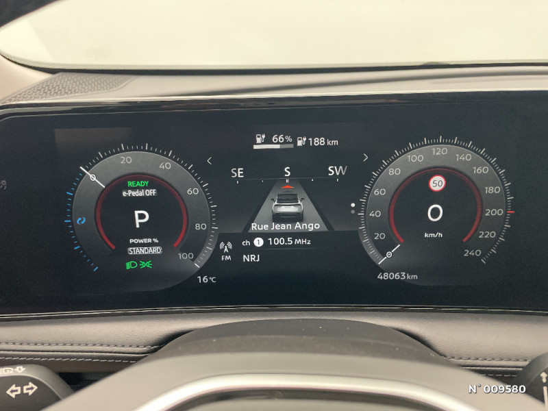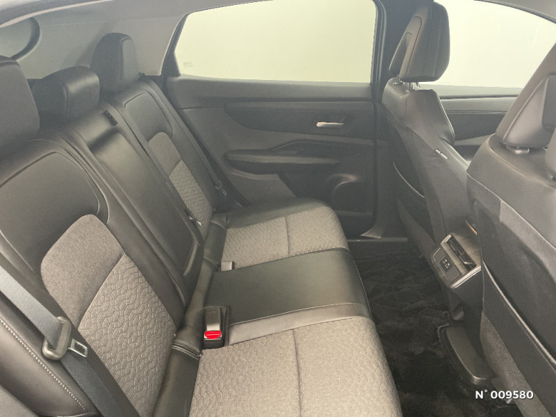 Technologie de conduite assistée ProPILOT / Technologie ProPILOT Assist - avec Navi-Link - technologie de conduite assistée : Aide au maintien dans la voie, freinage anticipé dans les courbes via la navigation, assistant de conduite en embouteillage ,ajustement aux limitations de vitesse / Vitres électriques avec mode impulsionnel à l'AV et à l'AR et commande à distance / Vitres électriques avec mode impulsionnel AV et AR et commande à distance / Vitres latérales AR et vitre de hayon teintées / Volant chauffant / 2 ports USB AV et 2 ports USB AR (Type-A et Type-C) / Chargeur embarqué 7,4 kW / Combiné d'instrumentation digital avec écran 12,3'' TFT / Commandes au volant: contrôle de l'ordinateur de bord, audio, téléphone, régulateur et limiteur de vitesse / Compatibilité Google Assistant / Amazon Alexa / Connecteur Combo CCS 130 kW / Contrôle vocal Nissan / Eclairage d'ambiance Andon à motifs "Kumiko" (plancher + portes AV) / e-Pedal Step / Feux de détresse à déclenchement automatique / Feux de route adaptatifs / Feux de route intelligents / Feux diurnes LED avec système Follow Me Home / Frein de stationnement électrique / Freinage d'urgence AR intelligent avec détection piéton et cyclistes et intersections / Nissan AVM - Vision Intelligente à 360° / NissanConnect Services - Services télématiques avec accès à distance depuis un smartphone / NissanConnect Services liés à la navigation Alertes intelligentes : notifications en cas de dépassement d'une vitesse, d'une zone ou d'un temps de conduite prédéfinis. Historique de conduite et de navigation / Pare-brise chauffant / Peinture unie / Planificateur d'itinéraire intelligent / Freinage d'urgence intelligent avec détection piétons, cyclistes et intersections / Hayon électrique avec ouverture mains libres / Poche aumônière au dos des sièges AV et accoudoirs AR / Points d'ancrage pour sièges enfants ISOFIX à l'AR (x2) / Pompe à chaleur / Purificateur d'air / Rétroviseur intérieur électrochromatique / Sélection du mode de conduite (ECO, STANDARD et SPORT) / Sellerie mixte TEP/Tissu / Siège conducteur avec réglage lombaire électrique / Antenne aileron de requin / Arches latérales effet "chrome satiné" / Assistant de conduite en embouteillage / Assistant Personnel Virtuel / Badge Nissan Charge offert pendant 3 ans / Bandeau de feux AR LED / Buses de ventilation AR / Câble de recharge EVSE Mode 2 10 A / Câble de recharge T2-T2 32 A / Cache-bagages amovible / Sièges AV ajustables électriquement 6 voies / Système actif de gestion de la température de la batterie (réchauffement et refroidissement) / Système d'alerte anticollision AR intelligent avec détection des objets en mouvement / Système d'alerte prédictif anticollision frontale / Système d'avertissement acoustique du véhicule (AVAS) / Système de navigation NissanConnect avec écran tactile 12,3" : Live Traffic et cartes 3D, Navigation porte-à-porte, Recherche par Points d'Intérêt, Google Street View, Vue Satellite et Météo, Mise à jour des cartes et logiciels, Prix des carburants, Commandes vocales avancées avec Amazon Alexa / Système d'infodivertissement avec mise à jour à distance "Over The Air" / Système d'ouverture et de démarrage sans clé "Intelligent key"