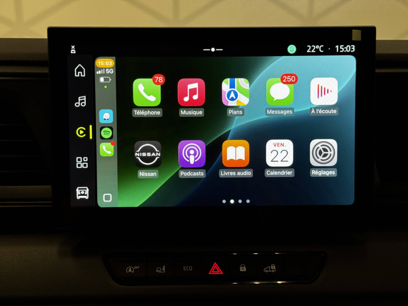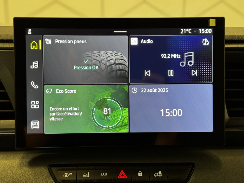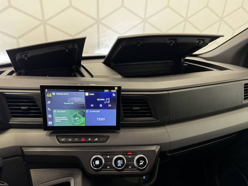 3 Prises 12V, AV, tableau de bord et pilier D / Accoudoir réglable pour le conducteur / Aérateurs et pommeau de boîte de vitesses chromés / Aide au maintien dans la voie / Appel d'urgence et de panne / Banquette passagers avec bureau et rangement / Boîte de vitesses automatique 9 rapports / Calandre noire grainée / Cloison complète tôlée / Deux clés rabattables / Eclairage cabine / Eclairage de la zone de chargement / Ecran tactile 10,1" compatible Apple CarPlay & Android Auto / Feux AV à LED et capteur de pluie automatiques / Feux de route automatiques / Freinage d'urgence intelligent à AV avec reconnaissance des piétons et des cyclistes / Frein de stationnement mécanique / Indicateur de changement de vitesse / Indicateurs latéraux de changement de direction / Isolation cloison 6 mm / Kit de réparation pneumatiques / Ordinateur de bord avec écran TFT multifonction noir et blanc 3,5" / Points ancrage plancher 8 / Portes AR panneaux / Portes AR tôlées ouvrant à 180° / Pré-câblage attelage / Prédisposition éthylotest antidémarrage / Rangement supérieur tableau de bord fermé / Roues en acier 16" avec grand enjoliveur / Sellerie tissu premium / Seuils de coffre / Siège conducteur avec réglage lombaire manuel / Système de détection de la fatigue