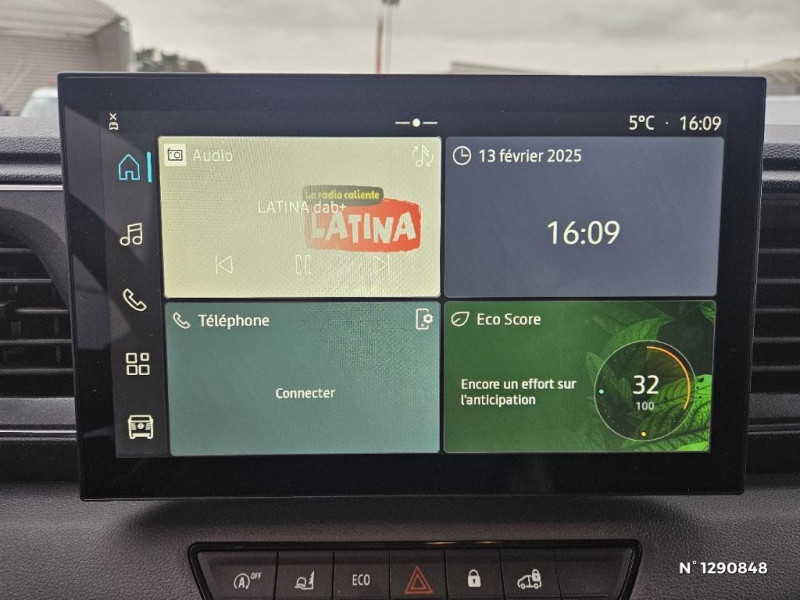 Accoudoir réglable pour le conducteur / Freinage d'urgence intelligent à AV avec reconnaissance des piétons et des cyclistes / Aide au maintien dans la voie / Appel d'urgence et de panne / Banquette passagers avec bureau et rangement / Boîte de vitesses manuelle 6 rapports / Calandre noire grainée / Cloison complète tôlée / Deux clés rabattables / Eclairage cabine / Eclairage de la zone de chargement / Ecran tactile 10,1" compatible Apple CarPlay & Android Auto / Indicateur de changement de vitesse / Indicateurs latéraux de changement de direction / Isolation cloison 6 mm / Kit de réparation pneumatiques / Ordinateur de bord avec écran TFT multifonction noir et blanc 3,5" / Points ancrage plancher 8 / Portes AR panneaux / Portes AR tôlées ouvrant à 180° / Pré-câblage attelage / Prédisposition éthylotest antidémarrage / Rangement supérieur tableau de bord ouvert / Roues en acier 16" avec enjoliveur moyen / Système de détection de la fatigue / Feux AV à LED et capteur de pluie automatiques / Feux de route automatiques / Frein de stationnement mécanique / Aérateurs et pommeau de boîte de vitesses chromés