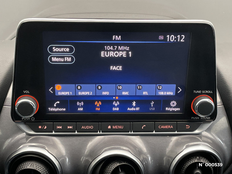 ABS et EBD / Alarme périmétrique / Fonction des feux avant "Follow me Home" / Frein à main électrique avec aide au stationnement/démarrage et fonction Autohold / Freinage d'urgence intelligent (AEB) avec détection piéton et cyclistes / Indicateur de changement de rapport / Kit de réparation pneumatique / Liseuses AV et AR / NBAS (amplificateur de freinage d'urgence) / Nissan Connect Services / Pare-soleil côtés conducteur et passager avec miroir de courtoisie / Plancher de coffre modulable / Poignées de maintien pour passager AV et AR / Poignées de porte extérieures couleur carrosserie / Poignées intérieures d'ouverture de porte chromées / Points d'accès Wi-Fi / Points d'ancrage pour sièges enfants ISOFIX à l'AR / Pommeau de levier de vitesse gainé de cuir / Porte-cartes intégré au pare-soleil côté conducteur / Porte-gobelets (x2) / Repose-genoux en TEP / Rétroviseur intérieur électrochromatique / Sélection du mode de conduite (ECO, STANDARD et SPORT) / Sellerie mixte TEP / Tissu / Sièges AV monoform style / Spoiler AR / Système audio radio avec écran tactile 8" avec interface personnalisable, Apple CarPlay et Android Auto, commandes vocales / Système "Chassis Control" : Intelligent Trace Control (contrôle actif de trajectoire) et Intelligent Ride Control (Contrôle actif de l'assiette) / Vitres AV/AR électriques avec mode impulsionnel côté conducteur / 6 HP / Antenne aileron de requin Noir / Bacs de rangement dans les contre-portes AV avec porte-bouteilles / Bluetooth+USB+AUX+12V / Caméra de recul avec radars de stationnement AV et AR / Ceintures de sécurité AV ajustables en hauteur / Ciel de toit Noir / Clignotants à trois clignotements / Combiné d'instrumentation avec écran LCD-TFT 7'' / Commandes au volant: contrôle de l'ordinateur de bord, audio, téléphone, régulateur et limiteur de vitesse / Contre-portes et tableau de bord en TEP noir / Direction assistée asservie à la vitesse / Eclairage du coffre / Feux de détresse à déclenchement automatique / Feux de route adaptatifs / Feux diurnes LED avec système Follow Me Home