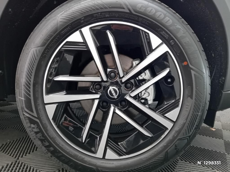 Feux de détresse à déclenchement automatique / Feux de route adaptatifs / Freinage d'urgence AR intelligent avec détection piéton et cyclistes / Indicateur de changement de rapport / Kit de réparation pneumatique / Liseuses AV et AR / NBAS (amplificateur de freinage d'urgence) / NissanConnect Services - Services télématiques avec accès à distance depuis un smartphone Service de commandes à distance, Géolocalisation du véhicule, Historique de conduite et de navigation, Rapports sur l'état de santé du véhicule et alertes de dysfonctionnement, Rappel des pas d'entretien, Aide et assistance Nissan, Point d'accès Wi-Fi / Pare-soleil côté conducteur et passager avec miroir de courtoisie / Peinture opaque / Poignées de maintien pour passager AV et AR / Poignées de portes couleur carrosserie / Poignées intérieures d'ouverture de porte chromées / Points d'ancrage pour sièges enfants ISOFIX à l'AR / Pommeau de levier de vitesse cuir / Porte-cartes intégré au pare-soleil côté conducteur / Porte-gobelets (2x) / Ceintures de sécurité AV ajustables en hauteur / Chargeur à induction pour Smartphone / Repose-genoux en TEP noir / Rétroviseur intérieur électrochromatique / Caméra de recul avec radars de stationnement AV et AR / ABS (système antiblocage des freins) / Alarme périmétrique / Antenne aileron de requin Noir / Sélection du mode de conduite (ECO, STANDARD et SPORT) / Sellerie Mixte TEP/Tissu Noir / Sièges AV avec appuis-tête intégrés / Spoiler AR / Système audio radio avec écran tactile 12,3" et reconnaissance vocale / Système "Chassis Control" : Intelligent Trace Control (contrôle actif de trajectoire) et Intelligent Ride Control (Contrôle actif de l'assiette) / Système de navigation NissanConnect avec écran tactile 12,3" : Live Traffic et cartes 3D, Navigation porte-à -porte, Recherche par Points d'Intérêt, Google Street View, Vue Satellite et Météo, Mise à jour des cartes et logiciels, Prix des carburants, Commandes vocales avancées avec Amazon Alexa® / Système d'ouverture et de démarrage sans clé "Intelligent key" avec fonction de verrouillage/ déverrouillage à l'approche du véhicule / Bacs de rangement dans les contre-portes AV avec porte-bouteilles / Bouton d'accès rapide aux réglages des aides à la conduite / Bouton de démarrage Start/Stop / Vitres AV/AR électriques avec mode impulsionnel côté conducteur et passager / Volant gainé de cuir synthétique / 6 HP (AV, portes AV et portes AR) / Ciel de toit Noir / Clignotants à trois clignotements / Combiné d'instrumentation digital 12,3'' / Commandes au volant: contrôle de l'ordinateur de bord, audio, téléphone, régulateur et limiteur de vitesse / Contre-portes et tableau de bord en TEP noir / Direction assistée asservie à la vitesse / Double port USB AR (USB-A et USB-C) / Double port USB AV (USB-A et USB-C) / Eclairage d'accompagnement automatique / Eclairage du coffre / e-Pedal Step