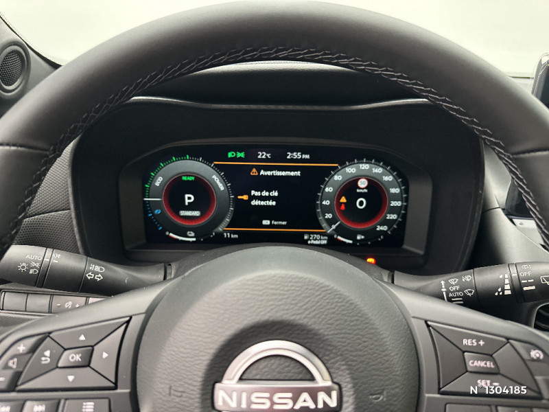 Sélection du mode de conduite (ECO, STANDARD et SPORT) / Sellerie Mixte TEP/Tissu Noir / Chargeur à induction pour Smartphone / Ciel de toit Noir / Clignotants à trois clignotements / Combiné d'instrumentation digital 12,3'' / Commandes au volant: contrôle de l'ordinateur de bord, audio, téléphone, régulateur et limiteur de vitesse / Contre-portes et tableau de bord en TEP noir / Direction assistée asservie à la vitesse / Double port USB AR (USB-A et USB-C) / Bacs de rangement dans les contre-portes AV avec porte-bouteilles / ABS (système antiblocage des freins) / Alarme périmétrique / Antenne aileron de requin Noir / Vitres AV/AR électriques avec mode impulsionnel côté conducteur et passager / Volant gainé de cuir synthétique / 6 HP (AV, portes AV et portes AR) / Bouton d'accès rapide aux réglages des aides à la conduite / Bouton de démarrage Start/Stop / Caméra de recul avec radars de stationnement AV et AR / Ceintures de sécurité AV ajustables en hauteur / Double port USB AV (USB-A et USB-C) / Eclairage d'accompagnement automatique / Eclairage du coffre / e-Pedal Step / Feux de détresse à déclenchement automatique / Feux de route adaptatifs / Freinage d'urgence AR intelligent avec détection piéton et cyclistes / Indicateur de changement de rapport / Kit de réparation pneumatique / Liseuses AV et AR / NBAS (amplificateur de freinage d'urgence) / NissanConnect Services - Services télématiques avec accès à distance depuis un smartphone Service de commandes à distance, Géolocalisation du véhicule, Historique de conduite et de navigation, Rapports sur l'état de santé du véhicule et alertes de dysfonctionnement, Rappel des pas d'entretien, Aide et assistance Nissan, Point d'accès Wi-Fi / Pare-soleil côté conducteur et passager avec miroir de courtoisie / Peinture opaque / Poignées de maintien pour passager AV et AR / Poignées de portes couleur carrosserie / Poignées intérieures d'ouverture de porte chromées / Points d'ancrage pour sièges enfants ISOFIX à l'AR / Pommeau de levier de vitesse cuir / Porte-cartes intégré au pare-soleil côté conducteur / Porte-gobelets (2x) / Repose-genoux en TEP noir / Rétroviseur intérieur électrochromatique / Sièges AV avec appuis-tête intégrés / Spoiler AR / Système audio radio avec écran tactile 12,3" et reconnaissance vocale / Système "Chassis Control" : Intelligent Trace Control (contrôle actif de trajectoire) et Intelligent Ride Control (Contrôle actif de l'assiette) / Système de navigation NissanConnect avec écran tactile 12,3" : Live Traffic et cartes 3D, Navigation porte-à -porte, Recherche par Points d'Intérêt, Google Street View, Vue Satellite et Météo, Mise à jour des cartes et logiciels, Prix des carburants, Commandes vocales avancées avec Amazon Alexa® / Système d'ouverture et de démarrage sans clé "Intelligent key" avec fonction de verrouillage/ déverrouillage à l'approche du véhicule