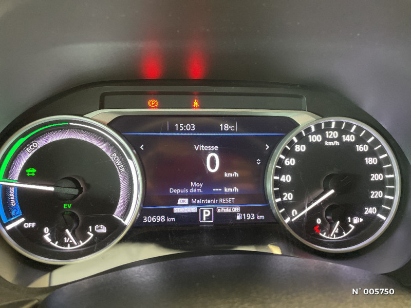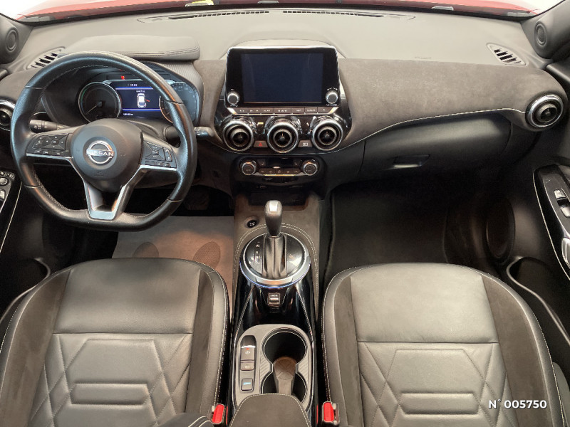Liseuses AV et AR / Mode 100% EV / NBAS (amplificateur de freinage d'urgence) / Nissan Connect Services / Pack Extérieur Noir Métallisé, Rouge Fuji ou Gris Perle / Pack Intérieur Noir, Orange ou Blanc / Pare-brise chauffant / Pare-soleil côtés conducteur et passager avec miroir de courtoisie / Peinture bi-ton / Peinture bi-ton / Plancher de coffre modulable / Poche aumônière au dos des sièges conducteur et passager / Poignées de maintien pour passager AV et AR / Poignées de porte extérieures couleur carrosserie / Poignées intérieures d'ouverture de porte chromées / Points d'accès Wi-Fi / Points d'ancrage pour sièges enfants ISOFIX à l'AR / Pommeau de levier de vitesse gainé de cuir / Porte-cartes intégré au pare-soleil côté conducteur / Porte-gobelets (x2) / Repose-genoux en TEP / Rétroviseur intérieur électrochromatique / Sélection du mode de conduite (ECO, STANDARD et SPORT) / Sellerie Perso Noir, Orange ou Blanc / Sièges AV monoform style / Spoiler AR / Système audio radio avec écran tactile 8" avec interface personnalisable, Apple CarPlay et Android Auto, commandes vocales / Système "Chassis Control" : Intelligent Trace Control (contrôle actif de trajectoire) et Intelligent Ride Control (Contrôle actif de l'assiette) / ABS et EBD / Alarme périmétrique / Antenne aileron de requin Noir / Bacs de rangement dans les contre-portes AV avec porte-bouteilles / Badge Hybrid sur les côtés et à l'AR / Bluetooth+USB+AUX+12V / Caméra de recul avec radars de stationnement AV et AR / Ceintures de sécurité AV ajustables en hauteur / Vitres AV/AR électriques avec mode impulsionnel côté conducteur / Volant chauffant / 6 HP / Ciel de toit Noir / Clignotants à trois clignotements / Combiné d'instrumentation avec écran LCD-TFT 7'' / Commandes au volant: contrôle de l'ordinateur de bord, audio, téléphone, régulateur et limiteur de vitesse / Contre-portes et tableau de bord spécifiques / Direction assistée asservie à la vitesse / Eclairage d'ambiance (contre-portes et levier de vitesses) / Eclairage du coffre / e-Pedal Step / Feux de détresse à déclenchement automatique / Feux de route adaptatifs / Feux diurnes LED avec système Follow Me Home / Fonction des feux avant "Follow me Home" / Frein à main électrique avec aide au stationnement/démarrage et fonction Autohold / Freinage d'urgence intelligent (AEB) avec détection piéton et cyclistes / Indicateur de changement de rapport / Kit de réparation pneumatique