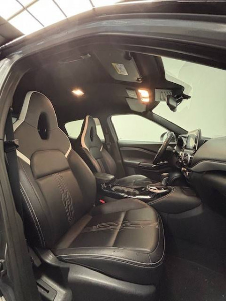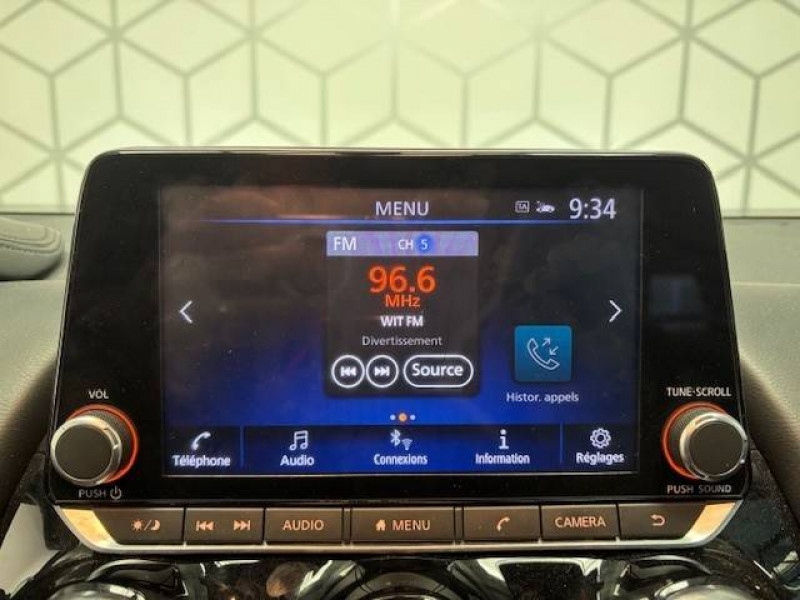 6 HP / ABS et EBD / Alarme périmétrique / Antenne aileron de requin Noir / Bacs de rangement dans les contre-portes AV avec porte-bouteilles / Bluetooth+USB+AUX+12V / Caméra de recul avec radars de stationnement AV et AR / Ceintures de sécurité AV ajustables en hauteur / Ciel de toit Noir / Clignotants à trois clignotements / Combiné d'instrumentation avec écran LCD-TFT 7'' / Commandes au volant: contrôle de l'ordinateur de bord, audio, téléphone, régulateur et limiteur de vitesse / Contre-portes et tableau de bord spécifiques / Direction assistée asservie à la vitesse / Eclairage d'ambiance (contre-portes et levier de vitesses) / Eclairage du coffre / e-Pedal Step / Feux de détresse à déclenchement automatique / Feux de route adaptatifs / Feux diurnes LED avec système Follow Me Home / Fonction des feux avant "Follow me Home" / Freinage d'urgence intelligent (AEB) avec détection piéton et cyclistes / Frein à main électrique avec aide au stationnement/démarrage et fonction Autohold / Indicateur de changement de rapport / Kit de réparation pneumatique / Liseuses AV et AR / NBAS (amplificateur de freinage d'urgence) / Nissan Connect Services / Pack Extérieur Noir Métallisé, Rouge Fuji ou Gris Perle / Pack Intérieur Noir, Orange ou Blanc / Pare-brise chauffant / Pare-soleil côtés conducteur et passager avec miroir de courtoisie / Peinture bi-ton / Plancher de coffre modulable / Poche aumônière au dos des sièges conducteur et passager / Poignées de maintien pour passager AV et AR / Poignées de porte extérieures couleur carrosserie / Poignées intérieures d'ouverture de porte chromées / Points d'accès Wi-Fi / Points d'ancrage pour sièges enfants ISOFIX à l'AR / Pommeau de levier de vitesse gainé de cuir / Porte-cartes intégré au pare-soleil côté conducteur / Porte-gobelets (2x) / Repose-genoux en TEP / Rétroviseur intérieur électrochromatique / Sélection du mode de conduite (ECO, STANDARD et SPORT) / Sellerie Perso Noir, Orange ou Blanc / Sièges AV monoform style / Spoiler AR / Système audio radio avec écran tactile 8" avec interface personnalisable, Apple CarPlay et Android Auto, commandes vocales / Système "Chassis Control" : Intelligent Trace Control (contrôle actif de trajectoire) et Intelligent Ride Control (Contrôle actif de l'assiette) / Vitres AV/AR électriques avec mode impulsionnel côté conducteur