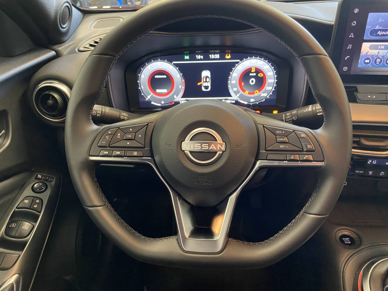 6 HP (AV, portes AV et portes AR) / ABS (système antiblocage des freins) / Alarme périmétrique / Antenne aileron de requin Noir / Bacs de rangement dans les contre-portes AV avec porte-bouteilles / Boîte de vitesses manuelle 6 rapports / Bouton d'accès rapide aux réglages des aides à la conduite / Bouton de démarrage Start/Stop / Caméra de recul avec radars de stationnement AV et AR / Ceintures de sécurité AV ajustables en hauteur / Chargeur à induction pour Smartphone / Ciel de toit Noir / Clignotants à trois clignotements / Combiné d'instrumentation digital 12,3'' / Commandes au volant: contrôle de l'ordinateur de bord, audio, téléphone, régulateur et limiteur de vitesse / Contre-portes et tableau de bord en TEP noir / Direction assistée asservie à la vitesse / Double port USB AR (USB-A et USB-C) / Double port USB AV (USB-A et USB-C) / Eclairage d'accompagnement automatique / Eclairage du coffre / Feux de détresse à déclenchement automatique / Feux de route adaptatifs / Freinage d'urgence AR intelligent avec détection piéton et cyclistes / Indicateur de changement de rapport / Kit de réparation pneumatique / Liseuses AV et AR / NBAS (amplificateur de freinage d'urgence) / Pare-soleil côté conducteur et passager avec miroir de courtoisie / Peinture opaque monoton / Poignées de maintien pour passager AV et AR / Poignées de portes couleur carrosserie / Poignées intérieures d'ouverture de porte chromées / Points d'ancrage pour sièges enfants ISOFIX à l'AR / Pommeau de levier de vitesse cuir / Porte-cartes intégré au pare-soleil côté conducteur / Porte-gobelets (x2) / Repose-genoux en TEP noir / Rétroviseur intérieur électrochromatique / Sélection du mode de conduite (ECO, STANDARD et SPORT) / Sellerie Mixte TEP/Tissu Noir / Sièges AV avec appuis-tête intégrés / Spoiler AR / Système audio radio avec écran tactile 12,3" et reconnaissance vocale / Système "Chassis Control" : Intelligent Trace Control (contrôle actif de trajectoire) et Intelligent Ride Control (Contrôle actif de l'assiette) / Système de navigation NissanConnect avec écran tactile 12,3" : Live Traffic et cartes 3D, Navigation porte-à-porte, Recherche par Points d'Intérêt, Google Street View, Vue Satellite et Météo, Mise à jour des cartes et logiciels, Prix des carburants, Commandes vocales avancées avec Amazon Alexa® / Système d'ouverture et de démarrage sans clé "Intelligent key" avec fonction de verrouillage/ déverrouillage à l'approche du véhicule / Vitres AV/AR électriques avec mode impulsionnel côté conducteur et passager / Volant gainé de cuir synthétique