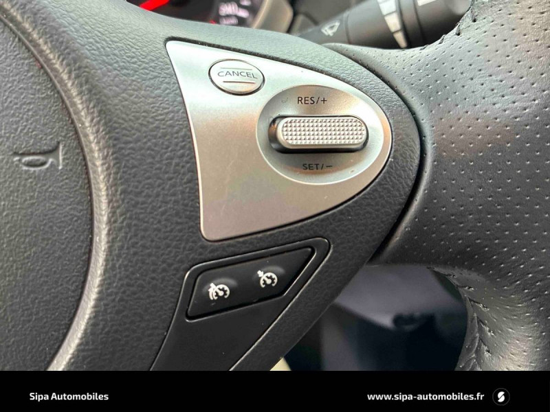 ABS Système antiblocage des freins / Appui-tête central AR / Ceintures de sécurité AV 3 points réglables en hauteur avec prétensionneurs et limiteur d'effort / Ciel de toit noir / Climatisation automatique couplée avec filtre à pollen / Coques de rétroviseurs extérieures couleur carrosserie / Feux AV supérieurs à LED, feux diurnes et feux de position / Indicateur de changement de vitesses / Kit de réparation pneumatique / NDCS : système de contrôle des modes de conduite (Eco, Normal, Sport) et de la climatisation / Nissan Connect / Nissan Safety Shield / NTVS Nissan Torque Vectoring System: Système de répartition du couple sur chacune des roues / Ordinateur de bord avec température extérieure / Pack Intérieur Creative Line: Rouge, Blanc, Jaune ou Noir / Pare-soleil conducteur et passager avec miroirs de courtoisie et jalousies / Plancher de coffre ajustable avec fonction plancher plat / Poche aumonière au dos du siège passager / Poignées de portes extérieures couleur carrosserie / Points d'ancrage de siège enfants ISOFIX à l'AR / Pommeau de levier de vitesse gainé cuir / Prise auxiliaire jack 3.5" pour lecteur MP3 / Régulateur et limiteur de vitesses avec commandes au volant / Rétroviseurs extérieurs à réglages électriques, dégivrants et rabattables automatiquement / Signature lumineuse à LED / Sortie d'échappement chromée / Système audio+ RDS CD avec commandes au volant et 6HP / Système d'ouverture et de démarrage sans clé "Intelligent key" / Système mains libres Bluetooth avec fonction streaming audio et commandes au volant / Vitres AV et AR électriques (avec mode impulsionnel et anti-pincement côté conducteur)