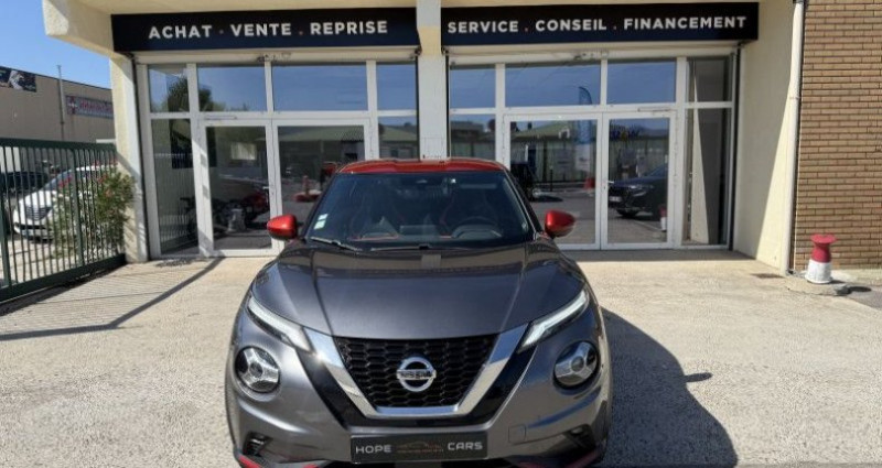 Nissan JUKE 1.0 DIG-T 114CH N-DESIGN DCT 2021, (S.U.V.), GRIS F, 6cv, 5 portes, mise en circulation le 22-06-2020, première main. 5 places, longueur : 4,21 mètres, boîte de vitesse : automatique OPTIONS ET EQUIPEMENTS : Audio - Télécommunications - Commandes du système audio au volant - Commandes vocales - Ecran tactile - Interface Media - Prise USB Conduite - Aide au démarrage en côte - Arrêt et redémarrage auto. du moteur - Capteur de pluie - Démarrage sans clé - Limiteur de vitesse Extérieur - Caméra de recul - JA 19 Akari - Jantes Alu - Phares avant LED - Radar de stationnement AR - Radar de stationnement AV Intérieur - Clim automatique - Ecran multifonction couleur - Rétroviseur intérieur électrochrome - Siège conducteur réglable en hauteur - Volant cuir - Volant multifonction Sécurité - Phares antibrouillard LED - Reconnaissance panneaux de signalisation Autres équipements et informations : - Gris Squale+Toit Rouge Fuji Kilométrage non garanti. -UNIQUEMENT SUR RENDEZ VOUS -ENTRETIENS SUIVI NISSAN - EXTENSIONS DE GARANTIE : possible jusqu'à 48 mois - LIVRAISON possible dans toute la France à votre domicile ou votre bureau ! (sur devis). -PRIX HORS FRAIS ADMINISTRATIF ET HORS FRAIS D'IMMATRICULATION - REPRISE possible de votre ancien véhicule. - Les INFORMATIONS délivrées par cette annonce sont non contractuelles et données à titre indicatif. Référence annonce : 110