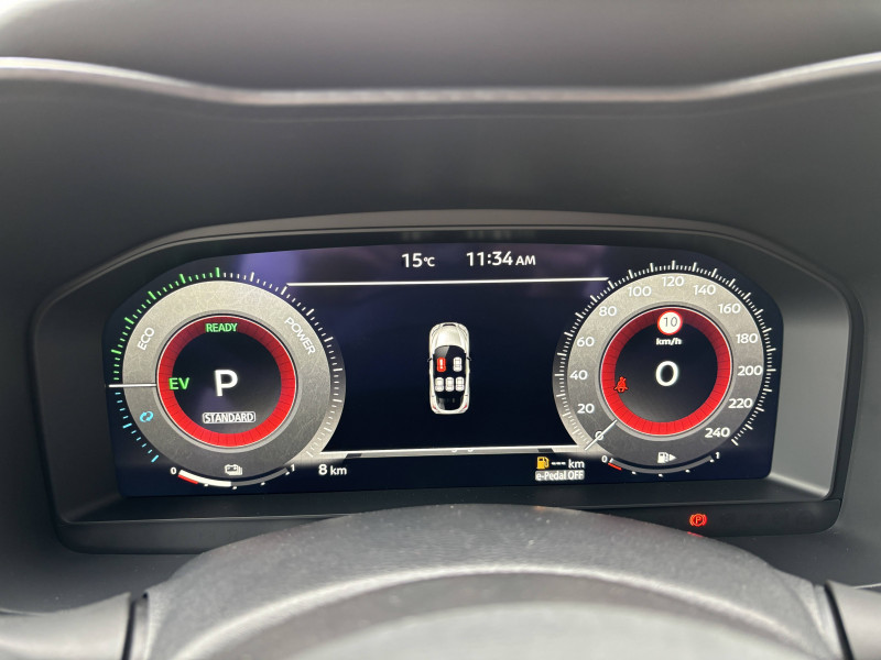 6 HP (AV, portes AV et portes AR) / ABS (système antiblocage des freins) / Alarme périmétrique / Antenne aileron de requin Noir / Bacs de rangement dans les contre-portes AV avec porte-bouteilles / Boîte de vitesses automatique 4 rapports / Bouton d'accès rapide aux réglages des aides à la conduite / Bouton de démarrage Start/Stop / Caméra de recul avec radars de stationnement AV et AR / Ceintures de sécurité AV ajustables en hauteur / Chargeur à induction pour Smartphone / Ciel de toit Noir / Clignotants à trois clignotements / Combiné d'instrumentation digital 12,3'' / Commandes au volant: contrôle de l'ordinateur de bord, audio, téléphone, régulateur et limiteur de vitesse / Contre-portes et tableau de bord en TEP noir / Direction assistée asservie à la vitesse / Double port USB AR (USB-A et USB-C) / Double port USB AV (USB-A et USB-C) / Eclairage d'accompagnement automatique / Eclairage du coffre / e-Pedal Step / Feux de détresse à déclenchement automatique / Feux de route adaptatifs / Freinage d'urgence AR intelligent avec détection piéton et cyclistes / Indicateur de changement de rapport / Kit de réparation pneumatique / Liseuses AV et AR / NBAS (amplificateur de freinage d'urgence) / Pare-soleil côté conducteur et passager avec miroir de courtoisie / Peinture opaque monoton / Poignées de maintien pour passager AV et AR / Poignées de portes couleur carrosserie / Poignées intérieures d'ouverture de porte chromées / Points d'ancrage pour sièges enfants ISOFIX à l'AR / Pommeau de levier de vitesse cuir / Porte-cartes intégré au pare-soleil côté conducteur / Porte-gobelets (x2) / Repose-genoux en TEP noir / Rétroviseur intérieur électrochromatique / Sélection du mode de conduite (ECO, STANDARD et SPORT) / Sellerie Mixte TEP/Tissu Noir / Sièges AV avec appuis-tête intégrés / Spoiler AR / Système audio radio avec écran tactile 12,3" et reconnaissance vocale / Système "Chassis Control" : Intelligent Trace Control (contrôle actif de trajectoire) et Intelligent Ride Control (Contrôle actif de l'assiette) / Système de navigation NissanConnect avec écran tactile 12,3" : Live Traffic et cartes 3D, Navigation porte-à-porte, Recherche par Points d'Intérêt, Google Street View, Vue Satellite et Météo, Mise à jour des cartes et logiciels, Prix des carburants, Commandes vocales avancées avec Amazon Alexa® / Système d'ouverture et de démarrage sans clé "Intelligent key" avec fonction de verrouillage/ déverrouillage à l'approche du véhicule / Vitres AV/AR électriques avec mode impulsionnel côté conducteur et passager / Volant gainé de cuir synthétique