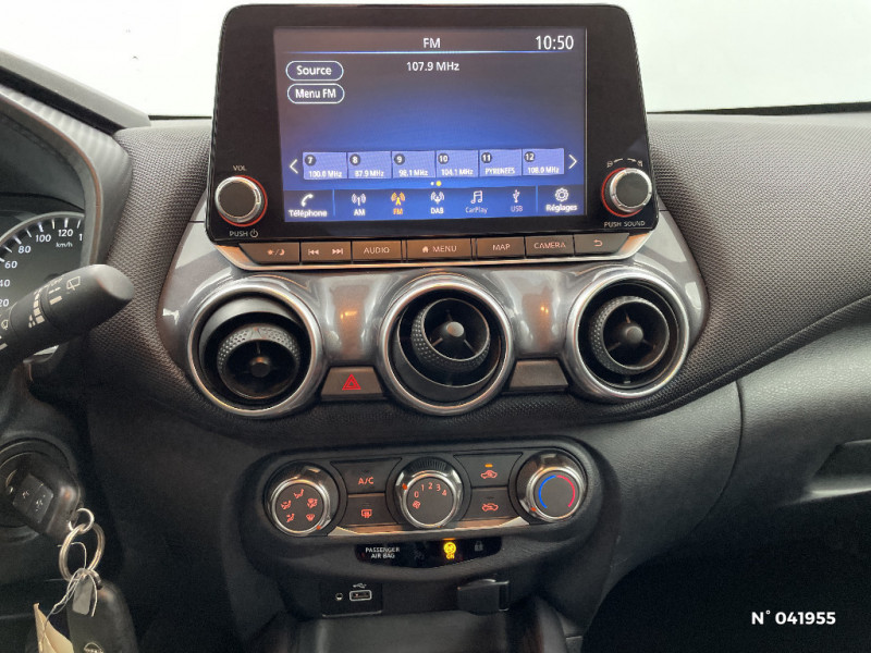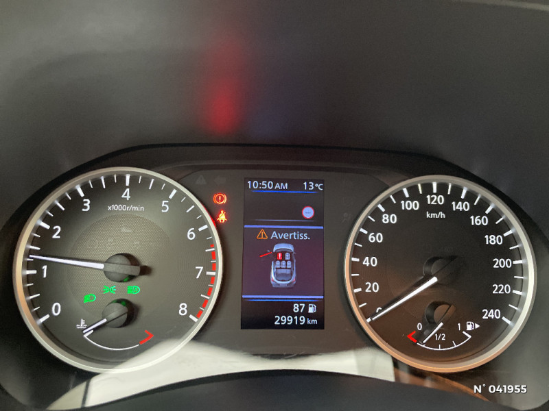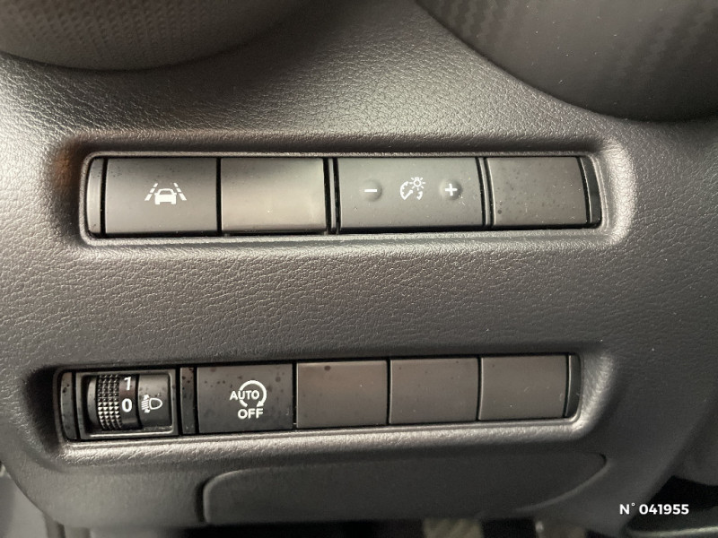 Nissan Connect / Vitres AV/AR électriques avec mode impulsionnel côté conducteur / 4 HP / ABS et EBD / Ciel de toit gris / Feux de détresse à déclenchement automatique / Commandes au volant : contrôle de l'ordinateur de bord, audio, téléphone, limiteur / régulateur de de vitesse / Feux de route adaptatifs / Eclairage du coffre / Système "Chassis Control" : Intelligent Trace Control (contrôle actif de trajectoire) et Intelligent Ride Control (Contrôle actif de l'assiette) / Pare-soleil côté conducteur et passager avec miroir de courtoisie / Points d'ancrage pour sièges enfants ISOFIX à l'AR / Direction assistée asservie à la vitesse / Freinage d'urgence intelligent (AEB) avec détection piéton et cyclistes / Contre-portes et tableau de bord en TEP noir / Sièges AV monoform style / Clignotants à trois clignotements / Fonction des feux avant "Follow me Home" / Liseuses AV et AR / Porte-gobelets (2x) / Bluetooth+USB+AUX+12V / Système audio radio avec écran tactile 8" avec interface personnalisable, Apple CarPlay et Android Auto, commandes vocales / Ceintures de sécurité AV ajustables en hauteur / Alarme périmétrique / Poignées de porte extérieures couleur carrosserie / Poignées intérieures d'ouverture de porte chromées / Indicateur de changement de rapport / Combiné d'instrumentation avec écran LCD-TFT 4,2'' / Jantes acier 17" avec enjoliveurs bi-ton / Spoiler AR / NBAS (amplificateur de freinage d'urgence) / Bacs de rangement dans les contre-portes AV avec porte-bouteilles