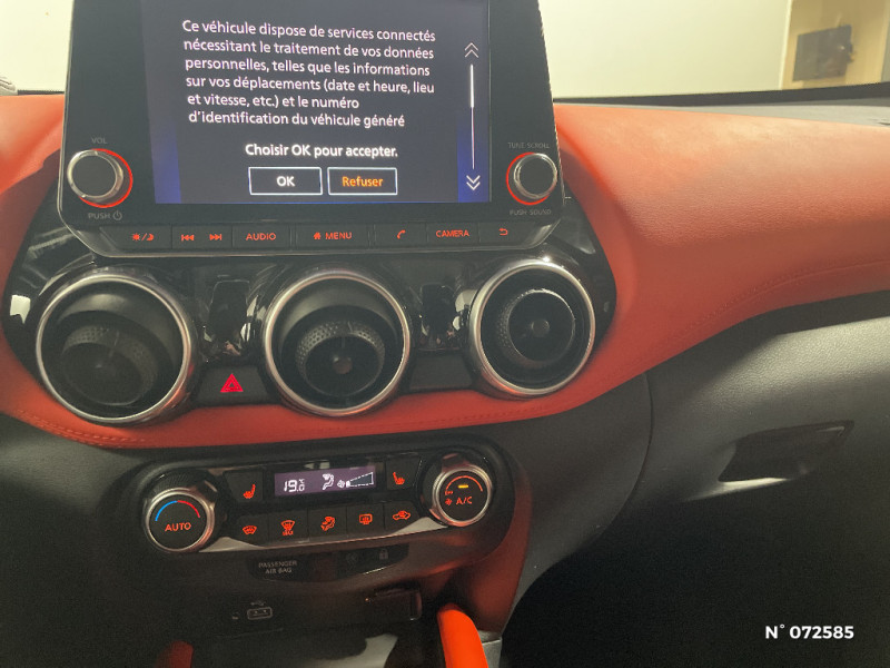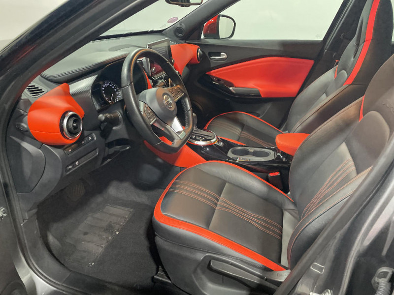 Points d'accès Wi-Fi / Points d'ancrage pour sièges enfants ISOFIX à l'AR / Pommeau de levier de vitesse gainé de cuir / Porte-cartes intégré au pare-soleil côté conducteur / Porte-gobelets (x2) / Reconnaissance vocale / Contre-portes et tableau de bord spécifiques / Direction assistée asservie à la vitesse / Eclairage d'ambiance (contre-portes et levier de vitesses) / Eclairage du coffre / e-Pedal Step / Feux de détresse à déclenchement automatique / Feux de route adaptatifs / Kit de réparation pneumatique / Liseuses AV et AR / NBAS (amplificateur de freinage d'urgence) / Nissan Connect Services / Pack Extérieur Noir Métallisé, Rouge Fuji ou Gris Perle / Pack Intérieur Noir, Orange ou Blanc / Pare-brise chauffant / Pare-soleil côtés conducteur et passager avec miroir de courtoisie / Plancher de coffre modulable / Poche aumônière au dos des sièges AV et accoudoirs AR / Poignées de maintien pour passager AV et AR / Poignées de porte extérieures couleur carrosserie / Poignées intérieures d'ouverture de porte chromées / Système audio radio avec écran tactile 8" avec interface personnalisable, Apple CarPlay et Android Auto, commandes vocales / Système "Chassis Control" : Intelligent Trace Control (contrôle actif de trajectoire) et Intelligent Ride Control (Contrôle actif de l'assiette) / Vitres AV/AR électriques avec mode impulsionnel côté conducteur / 6 HP / ABS et EBD / Alarme périmétrique / Bacs de rangement dans les contre-portes AV avec porte-bouteilles / Bluetooth+USB+AUX+12V / Ceintures de sécurité AV ajustables en hauteur / Ciel de toit Noir / Clignotants à trois clignotements / Combiné d'instrumentation avec écran LCD-TFT 7'' / Commandes au volant: contrôle de l'ordinateur de bord, audio, téléphone, régulateur et limiteur de vitesse / Sièges AV monoform style / Spoiler AR / Repose-genoux en TEP / Rétroviseur intérieur électrochromatique / Sélection du mode de conduite (ECO, STANDARD et SPORT) / Sellerie Perso Noir, Orange ou Blanc / Feux diurnes LED avec système Follow Me Home / Fonction des feux avant "Follow me Home" / Frein à main électrique avec aide au stationnement/démarrage et fonction Autohold / Freinage d'urgence intelligent (AEB) avec détection piéton et cyclistes / Indicateur de changement de rapport