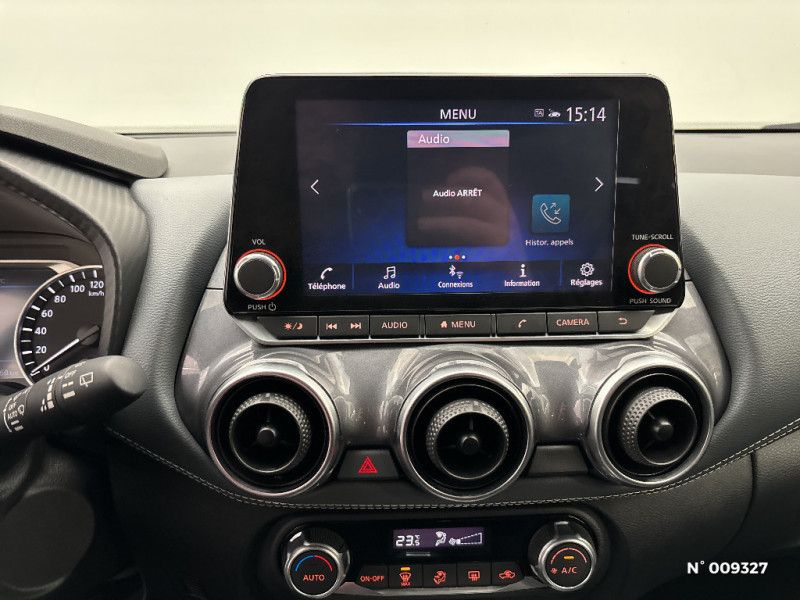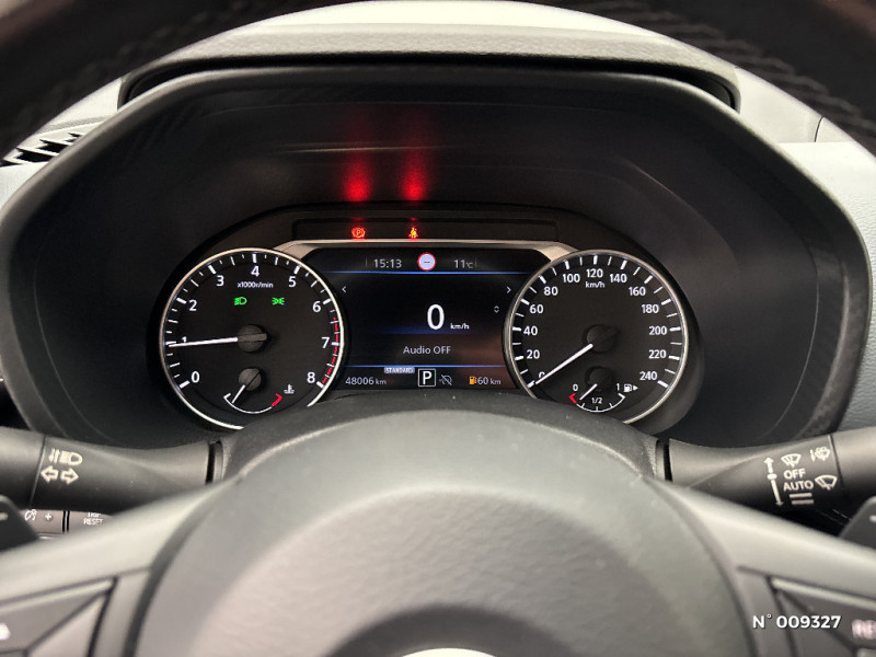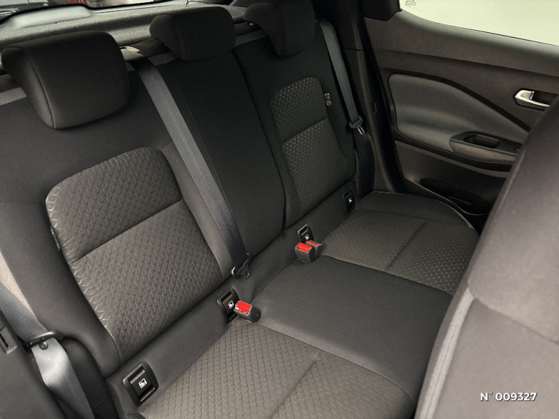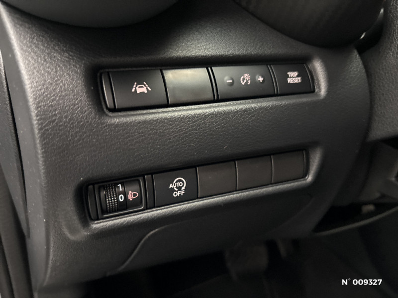Indicateur de changement de rapport / Kit de réparation pneumatique / Liseuses AV et AR / NBAS (amplificateur de freinage d'urgence) / Nissan Connect Services / ABS et EBD / Pare-soleil côtés conducteur et passager avec miroir de courtoisie / Plancher de coffre modulable / Poignées de maintien pour passager AV et AR / Poignées de porte extérieures couleur carrosserie / Poignées intérieures d'ouverture de porte chromées / Points d'accès Wi-Fi / Points d'ancrage pour sièges enfants ISOFIX à l'AR / Pommeau de levier de vitesse gainé de cuir / Porte-cartes intégré au pare-soleil côté conducteur / Porte-gobelets (x2) / Reconnaissance vocale / Alarme périmétrique / Antenne aileron de requin Noir / Bacs de rangement dans les contre-portes AV avec porte-bouteilles / Bluetooth+USB+AUX+12V / Ceintures de sécurité AV ajustables en hauteur / Ciel de toit Noir / Clignotants à trois clignotements / Combiné d'instrumentation avec écran LCD-TFT 7'' / Commandes au volant: contrôle de l'ordinateur de bord, audio, téléphone, régulateur et limiteur de vitesse / Contre-portes et tableau de bord en TEP gris / Direction assistée asservie à la vitesse / Eclairage du coffre / Feux de détresse à déclenchement automatique / Feux de route adaptatifs / 6 HP / Repose-genoux en TEP / Rétroviseur intérieur électrochromatique / Sélection du mode de conduite (ECO, STANDARD et SPORT) / Sellerie Tissu Noir avec surpiqûres grises / Sièges AV monoform style / Spoiler AR / Système audio radio avec écran tactile 8" avec interface personnalisable, Apple CarPlay et Android Auto, commandes vocales / Système "Chassis Control" : Intelligent Trace Control (contrôle actif de trajectoire) et Intelligent Ride Control (Contrôle actif de l'assiette) / Vitres AV/AR électriques avec mode impulsionnel côté conducteur / Feux diurnes LED avec système Follow Me Home / Fonction des feux avant "Follow me Home" / Frein à main électrique avec aide au stationnement/démarrage et fonction Autohold / Freinage d'urgence intelligent (AEB) avec détection piéton et cyclistes