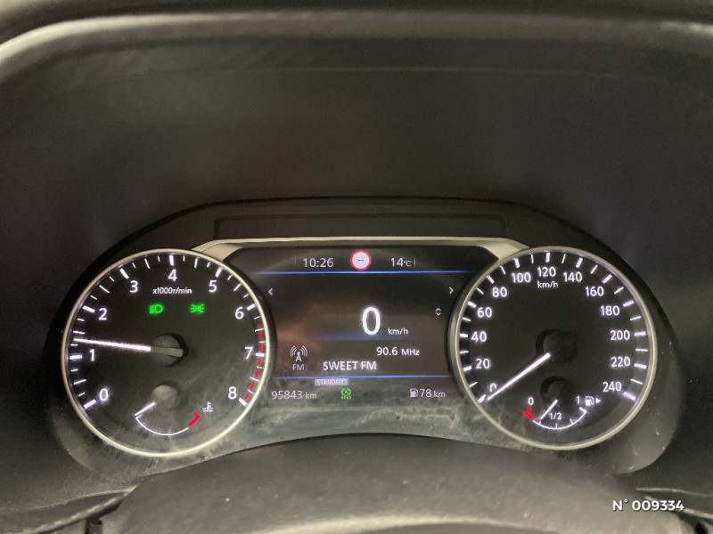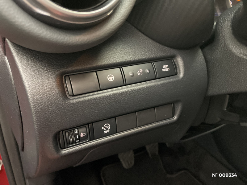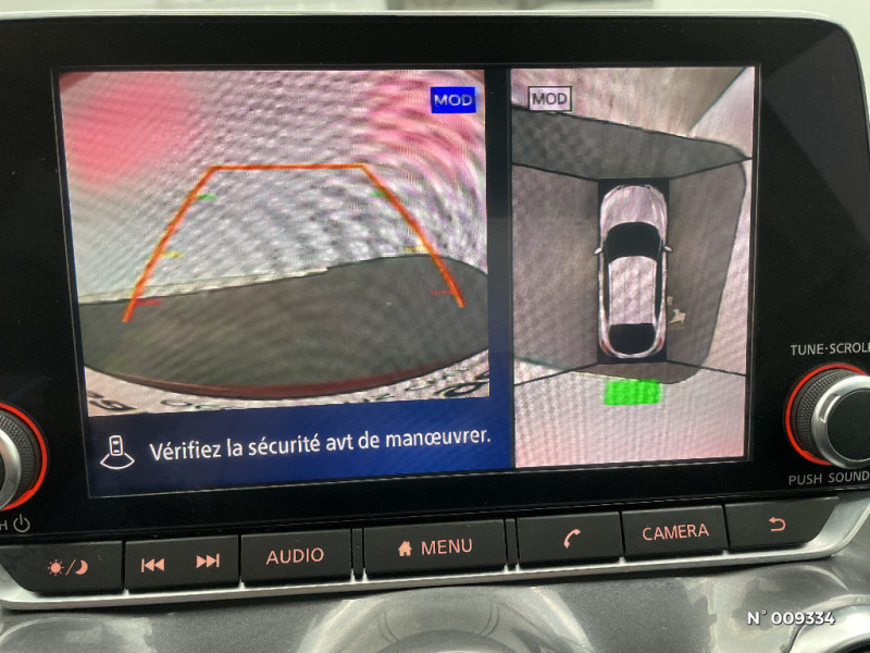 Bacs de rangement dans les contre-portes AV avec porte-bouteilles / Feux de route adaptatifs / Feux diurnes LED avec système Follow Me Home / Ceintures de sécurité AV ajustables en hauteur / Ciel de toit Noir / Clignotants à trois clignotements / Combiné d'instrumentation avec écran LCD-TFT 7'' / Commandes au volant: contrôle de l'ordinateur de bord, audio, téléphone, régulateur et limiteur de vitesse / Contre-portes et tableau de bord en TEP gris / ABS et EBD / Alarme périmétrique / Antenne aileron de requin Noir / Indicateur de changement de rapport / Kit de réparation pneumatique / Liseuses AV et AR / Bluetooth+USB+AUX+12V / Caméra de recul avec radars de stationnement AV et AR / NBAS (amplificateur de freinage d'urgence) / Nissan AVM - Vision Intelligente à 360° / Nissan Connect Services / Pare-brise chauffant / Pare-soleil côtés conducteur et passager avec miroir de courtoisie / Plancher de coffre modulable / Poche aumônière au dos des sièges AV et accoudoirs AR / Poignées de maintien pour passager AV et AR / Poignées de porte extérieures couleur carrosserie / Poignées intérieures d'ouverture de porte chromées / Points d'accès Wi-Fi / Points d'ancrage pour sièges enfants ISOFIX à l'AR / Pommeau de levier de vitesse gainé de cuir / Porte-cartes intégré au pare-soleil côté conducteur / Porte-gobelets (x2) / Frein à main électrique avec aide au stationnement/démarrage et fonction Autohold / Freinage d'urgence intelligent (AEB) avec détection piéton et cyclistes / Reconnaissance vocale / Repose-genoux en TEP / Rétroviseur intérieur électrochromatique / Vitres AV/AR électriques avec mode impulsionnel côté conducteur / Sélection du mode de conduite (ECO, STANDARD et SPORT) / Sellerie mixte TEP/Tissu / Sièges AV monoform style / Spoiler AR / Système audio Bose Personal Plus avec 8 haut-parleurs 4 HP AV et côtés), 2 HP intégrés à l'appui-tête conducteur et passager AV, Réglage de l'immersion sonore / Système audio radio avec écran tactile 8" avec interface personnalisable, Apple CarPlay et Android Auto, commandes vocales / Système "Chassis Control" : Intelligent Trace Control (contrôle actif de trajectoire) et Intelligent Ride Control (Contrôle actif de l'assiette) / Système d'alerte anticollision AR intelligent avec détection des objets en mouvement / Fonction des feux avant "Follow me Home" / Direction assistée asservie à la vitesse / Drive Assist:technologie de conduite assistée / Eclairage d'ambiance (contre-portes et levier de vitesses) / Eclairage du coffre / Feux de détresse à déclenchement automatique