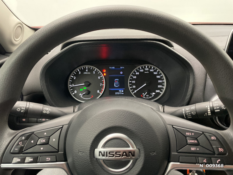 Clignotants à trois clignotements / Combiné d'instrumentation avec écran LCD-TFT 4,2'' / Commandes au volant: contrôle de l'ordinateur de bord, audio, téléphone, régulateur et limiteur de vitesse / Contre-portes et tableau de bord en TEP noir / Direction assistée asservie à la vitesse / Eclairage du coffre / Feux de détresse à déclenchement automatique / Feux de route adaptatifs / Feux diurnes LED avec système Follow Me Home / Fonction des feux avant "Follow me Home" / Freinage d'urgence intelligent (AEB) avec détection piéton et cyclistes / Indicateur de changement de rapport / Vitres AV/AR électriques avec mode impulsionnel côté conducteur / 4 HP / Jantes acier 17" bi-ton / Liseuses AV et AR / NBAS (amplificateur de freinage d'urgence) / Nissan Connect / Pare-soleil côtés conducteur et passager avec miroir de courtoisie / Poignées de porte extérieures couleur carrosserie / Poignées intérieures d'ouverture de porte chromées / Points d'ancrage pour sièges enfants ISOFIX à l'AR / Porte-gobelets (x2) / Reconnaissance vocale / Sièges AV monoform style / Spoiler AR / Système audio radio avec écran tactile 8" avec interface personnalisable, Apple CarPlay et Android Auto, commandes vocales / Système "Chassis Control" : Intelligent Trace Control (contrôle actif de trajectoire) et Intelligent Ride Control (Contrôle actif de l'assiette) / ABS et EBD / Alarme périmétrique / Bacs de rangement dans les contre-portes AV avec porte-bouteilles / Bluetooth+USB+AUX+12V / Ceintures de sécurité AV ajustables en hauteur / Ciel de toit gris