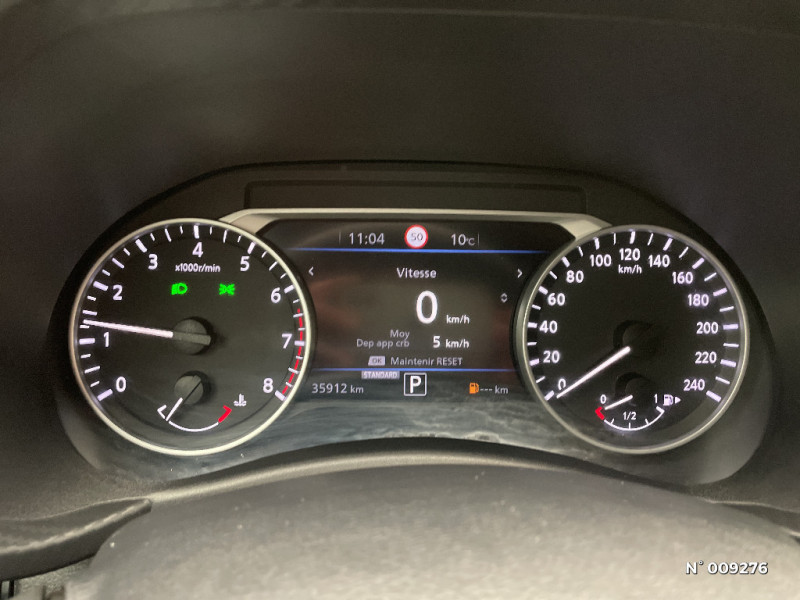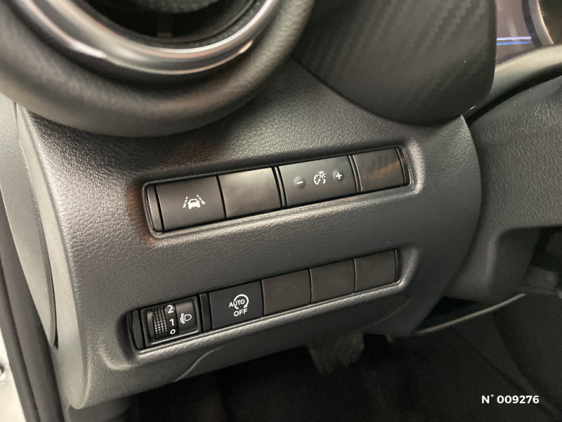 Pare-soleil côtés conducteur et passager avec miroir de courtoisie / Plancher de coffre modulable / Poignées de maintien pour passager AV et AR / ABS et EBD / Alarme périmétrique / Antenne aileron de requin Noir / Bacs de rangement dans les contre-portes AV avec porte-bouteilles / Bluetooth+USB+AUX+12V / Caméra de recul avec radars de stationnement AV et AR / Ceintures de sécurité AV ajustables en hauteur / Ciel de toit Noir / Clignotants à trois clignotements / Combiné d'instrumentation avec écran LCD-TFT 7'' / Commandes au volant: contrôle de l'ordinateur de bord, audio, téléphone, régulateur et limiteur de vitesse / Contre-portes et tableau de bord en TEP noir / Direction assistée asservie à la vitesse / Eclairage du coffre / Feux de détresse à déclenchement automatique / Feux de route adaptatifs / Feux diurnes LED avec système Follow Me Home / Fonction des feux avant "Follow me Home" / Frein à main électrique avec aide au stationnement/démarrage et fonction Autohold / Freinage d'urgence intelligent (AEB) avec détection piéton et cyclistes / Indicateur de changement de rapport / Kit de réparation pneumatique / Liseuses AV et AR / Poignées intérieures d'ouverture de porte chromées / Points d'accès Wi-Fi / Points d'ancrage pour sièges enfants ISOFIX à l'AR / Pommeau de levier de vitesse gainé de cuir / Porte-cartes intégré au pare-soleil côté conducteur / Porte-gobelets (x2) / Repose-genoux en TEP / Rétroviseur intérieur électrochromatique / Sélection du mode de conduite (ECO, STANDARD et SPORT) / Sellerie mixte TEP / Tissu / Sièges AV monoform style / Spoiler AR / Système audio radio avec écran tactile 8" avec interface personnalisable, Apple CarPlay et Android Auto, commandes vocales / Système "Chassis Control" : Intelligent Trace Control (contrôle actif de trajectoire) et Intelligent Ride Control (Contrôle actif de l'assiette) / Vitres AV/AR électriques avec mode impulsionnel côté conducteur / 6 HP / Poignées de porte extérieures couleur carrosserie / NBAS (amplificateur de freinage d'urgence) / Nissan Connect Services