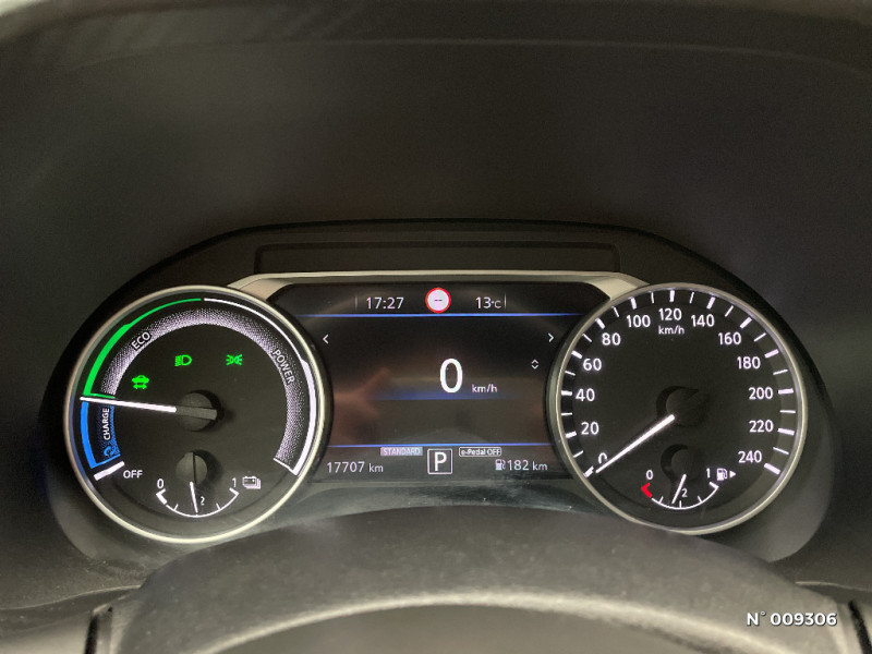 e-Pedal Step / Feux de détresse à déclenchement automatique / Feux de route adaptatifs / Freinage d'urgence AR intelligent avec détection piéton et cyclistes / Indicateur de changement de rapport / Kit de réparation pneumatique / Liseuses AV et AR / Points d'ancrage pour sièges enfants ISOFIX à l'AR / Pommeau de levier de vitesse cuir / Porte-cartes intégré au pare-soleil côté conducteur / Porte-gobelets (x2) / Repose-genoux en TEP noir / Rétroviseur intérieur électrochromatique / Sélection du mode de conduite (ECO, STANDARD et SPORT) / Sellerie Mixte TEP/Tissu Noir / Sièges AV avec appuis-tête intégrés / Spoiler AR / Système audio radio avec écran tactile 12,3" et reconnaissance vocale / Système "Chassis Control" : Intelligent Trace Control (contrôle actif de trajectoire) et Intelligent Ride Control (Contrôle actif de l'assiette) / Système de navigation NissanConnect avec écran tactile 12,3" : Live Traffic et cartes 3D, Navigation porte-à -porte, Recherche par Points d'Intérêt, Google Street View, Vue Satellite et Météo, Mise à jour des cartes et logiciels, Prix des carburants, Commandes vocales avancées avec Amazon Alexa® / Système d'ouverture et de démarrage sans clé "Intelligent key" avec fonction de verrouillage/ déverrouillage à l'approche du véhicule / Vitres AV/AR électriques avec mode impulsionnel côté conducteur et passager / Volant gainé de cuir synthétique / 6 HP (AV, portes AV et portes AR) / ABS (système antiblocage des freins) / Alarme périmétrique / Antenne aileron de requin Noir / Bacs de rangement dans les contre-portes AV avec porte-bouteilles / Boîte de vitesses automatique 4 rapports / Bouton d'accès rapide aux réglages des aides à la conduite / Bouton de démarrage Start/Stop / Caméra de recul avec radars de stationnement AV et AR / Ceintures de sécurité AV ajustables en hauteur / Chargeur à induction pour Smartphone / Ciel de toit Noir / Clignotants à trois clignotements / Combiné d'instrumentation digital 12,3'' / Commandes au volant: contrôle de l'ordinateur de bord, audio, téléphone, régulateur et limiteur de vitesse / Contre-portes et tableau de bord en TEP noir / Direction assistée asservie à la vitesse / Double port USB AR (USB-A et USB-C) / Double port USB AV (USB-A et USB-C) / Eclairage d'accompagnement automatique / Eclairage du coffre / NBAS (amplificateur de freinage d'urgence) / Pare-soleil côté conducteur et passager avec miroir de courtoisie / Peinture opaque monoton / Poignées de maintien pour passager AV et AR / Poignées de portes couleur carrosserie / Poignées intérieures d'ouverture de porte chromées