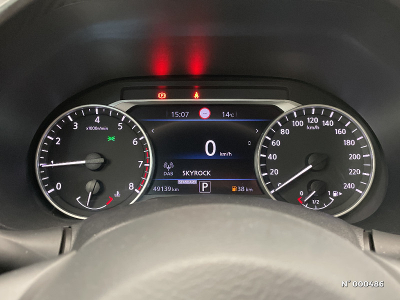 Toit Noir Métalisé / Vitres AV/AR électriques avec mode impulsionnel côté conducteur / 6 HP / Bacs de rangement dans les contre-portes AV avec porte-bouteilles / Bluetooth+USB+AUX+12V / Ceintures de sécurité AV ajustables en hauteur / Ciel de toit Noir / Clignotants à trois clignotements / "ATTENTION" - Equipements incomplets / Combiné d'instrumentation avec écran LCD-TFT 7'' / Commandes au volant: contrôle de l'ordinateur de bord, audio, téléphone, régulateur et limiteur de vitesse / Contre-portes et tableau de bord en TEP gris / Direction assistée asservie à la vitesse / Eclairage du coffre / Feux de détresse à déclenchement automatique / Feux de route adaptatifs / Feux diurnes LED avec système Follow Me Home / Fonction des feux avant "Follow me Home" / Freinage d'urgence intelligent (AEB) avec détection piéton et cyclistes / Indicateur de changement de rapport / Jantes acier 17" bi-ton / Kit de réparation pneumatique / Liseuses AV et AR / NBAS (amplificateur de freinage d'urgence) / Nissan Connect Services / Pare-soleil côtés conducteur et passager avec miroir de courtoisie / Personnalisation extérieure noire / Poignées de maintien pour passager AV et AR / Poignées de porte extérieures couleur carrosserie / Poignées intérieures d'ouverture de porte chromées / Points d'accès Wi-Fi / Points d'ancrage pour sièges enfants ISOFIX à l'AR / Pommeau de levier de vitesse gainé de cuir / Porte-cartes intégré au pare-soleil côté conducteur / Porte-gobelets (x2) / Reconnaissance vocale / Repose-genoux en TEP / ABS et EBD / Alarme périmétrique / Antenne aileron de requin Noir / Rétroviseur intérieur électrochromatique / Sélection du mode de conduite (ECO, STANDARD et SPORT) / Sellerie Tissu Noir avec surpiqûres grises / Sièges AV monoform style / Spoiler AR / Stickers Enigma / Système audio radio avec écran tactile 8" avec interface personnalisable, Apple CarPlay et Android Auto, commandes vocales / Système "Chassis Control" : Intelligent Trace Control (contrôle actif de trajectoire) et Intelligent Ride Control (Contrôle actif de l'assiette)