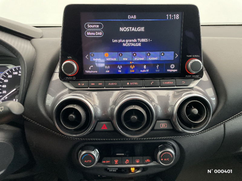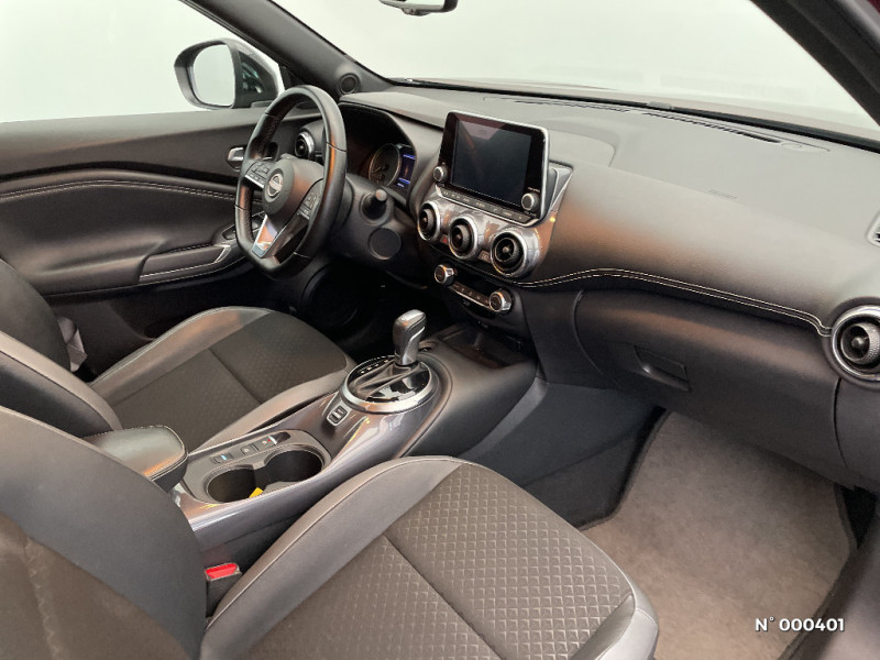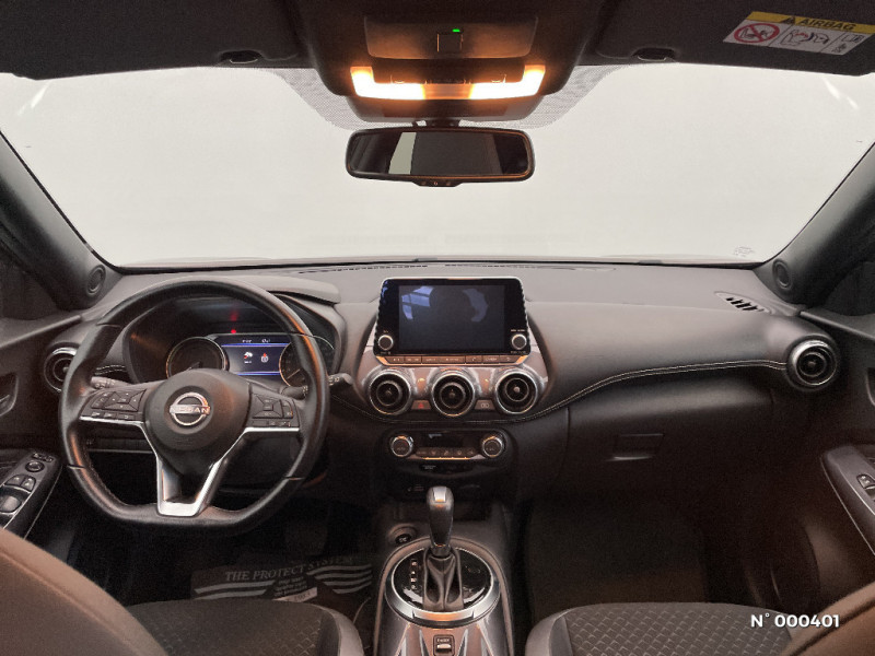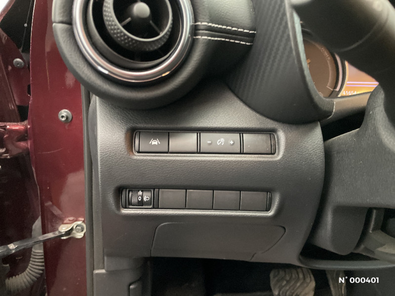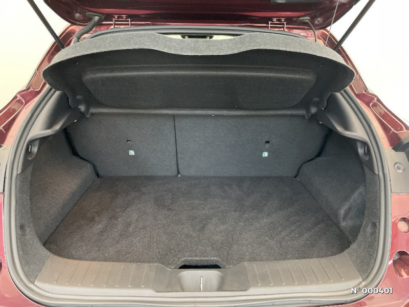 Nissan Connect Services / Pare-soleil côtés conducteur et passager avec miroir de courtoisie / Plancher de coffre modulable / Poignées de maintien pour passager AV et AR / Poignées de porte extérieures couleur carrosserie / Poignées intérieures d'ouverture de porte chromées / Points d'accès Wi-Fi / Points d'ancrage pour sièges enfants ISOFIX à l'AR / Pommeau de levier de vitesse gainé de cuir / Porte-cartes intégré au pare-soleil côté conducteur / Porte-gobelets (x2) / Bacs de rangement dans les contre-portes AV avec porte-bouteilles / Bluetooth+USB+AUX+12V / Caméra de recul avec radars de stationnement AV et AR / Ceintures de sécurité AV ajustables en hauteur / Ciel de toit Noir / Clignotants à trois clignotements / Combiné d'instrumentation avec écran LCD-TFT 7'' / Commandes au volant: contrôle de l'ordinateur de bord, audio, téléphone, régulateur et limiteur de vitesse / Contre-portes et tableau de bord en TEP noir / Direction assistée asservie à la vitesse / Eclairage du coffre / ABS et EBD / Alarme périmétrique / Antenne aileron de requin Noir / Spoiler AR / Système audio radio avec écran tactile 8" avec interface personnalisable, Apple CarPlay et Android Auto, commandes vocales / Système "Chassis Control" : Intelligent Trace Control (contrôle actif de trajectoire) et Intelligent Ride Control (Contrôle actif de l'assiette) / Vitres AV/AR électriques avec mode impulsionnel côté conducteur / 6 HP / Feux de détresse à déclenchement automatique / Feux de route adaptatifs / Feux diurnes LED avec système Follow Me Home / Fonction des feux avant "Follow me Home" / Frein à main électrique avec aide au stationnement/démarrage et fonction Autohold / Freinage d'urgence intelligent (AEB) avec détection piéton et cyclistes / Indicateur de changement de rapport / Kit de réparation pneumatique / Liseuses AV et AR / NBAS (amplificateur de freinage d'urgence) / Repose-genoux en TEP / Rétroviseur intérieur électrochromatique / Sélection du mode de conduite (ECO, STANDARD et SPORT) / Sellerie mixte TEP / Tissu / Sièges AV monoform style
