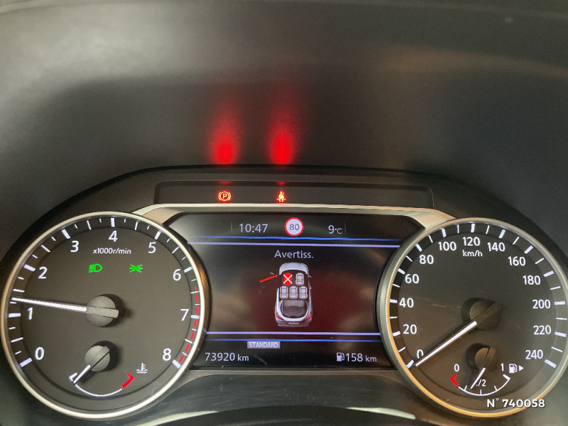 6 HP / Kit de réparation pneumatique / Liseuses AV et AR / NBAS (amplificateur de freinage d'urgence) / Nissan Connect Services / Pack bi-ton / Pack Extérieur / Pack Intérieur / Pare-soleil côté conducteur et passager avec miroir de courtoisie éclairé / Poche aumônière au dos des sièges AV et accoudoirs AR / Poignées de maintien passager AV / Poignées de maintien pour les passagers AR. / Poignées de portes couleur carrosserie / Combiné d'instrumentation avec écran HD TFT 7" couleur / ABS (Système antiblocage des freins) avec EBD (Répartiteur électronique de freinage) / Bacs de rangement dans les contre-portes AV avec porte-bouteilles / Bluetooth+USB+AUX+12V / Cache-bagages amovible / Ceintures de sécurité AV ajustables en hauteur / Clignotants à trois clignotements / Commandes au volant: contrôle de l'ordinateur de bord, audio, téléphone, régulateur et limiteur de vitesse / Contre-portes et tableau de bord spécifiques / Direction assistée asservie à la vitesse / Eclairage d'ambiance (contre-portes et levier de vitesses) / Eclairage du coffre / e-Pedal Step / Feux de détresse à déclenchement automatique / Feux de route adaptatifs / Feux diurnes LED avec système Follow Me Home / Fonction des feux avant "Follow me Home" / Frein à main électrique avec aide au stationnement/démarrage et fonction Autohold / Freinage d'urgence intelligent (AEB) avec détection piéton et cyclistes / Indicateur de changement de vitesses / Poignées de portes intérieures finition chrome / Sélection du mode de conduite (ECO, STANDARD et SPORT) / Sellerie Perso Noir, Orange ou Blanc / Sièges AV monoform style / Spoiler AR / Système audio radio avec écran tactile 8" avec interface personnalisable, Apple CarPlay et Android Auto, commandes vocales / Système "Chassis Control" : Intelligent Trace Control (contrôle actif de trajectoire) et Intelligent Ride Control (Contrôle actif de l'assiette) / Points d'ancrage de siège enfant ISOFIX sur le siège passager AV / Points d'ancrage pour sièges enfants ISOFIX à l'AR / Pommeau de levier de vitesse cuir / Porte-cartes intégré au pare-soleil côté conducteur / Porte-gobelets (x2) / Repose-genoux en TEP (Tissu Enduit) / Rétroviseur intérieur électrochromatique / Vitres AV/AR électriques avec mode impulsionnel côté conducteur / Wi-Fi (service payant) et reconnaissance vocale