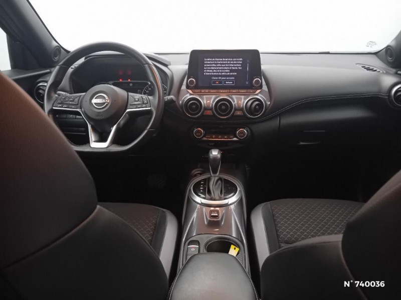 Repose-genoux en TEP / Rétroviseur intérieur électrochromatique / Indicateur de changement de rapport / Sélection du mode de conduite (ECO, STANDARD et SPORT) / Sellerie mixte TEP / Tissu / Sièges AV monoform style / Spoiler AR / Système audio radio avec écran tactile 8" avec interface personnalisable, Apple CarPlay et Android Auto, commandes vocales / Système "Chassis Control" : Intelligent Trace Control (contrôle actif de trajectoire) et Intelligent Ride Control (Contrôle actif de l'assiette) / Vitres AV/AR électriques avec mode impulsionnel côté conducteur / 6 HP / ABS et EBD / Alarme périmétrique / Antenne aileron de requin Noir / Bacs de rangement dans les contre-portes AV avec porte-bouteilles / Bluetooth+USB+AUX+12V / Caméra de recul avec radars de stationnement AV et AR / Ceintures de sécurité AV ajustables en hauteur / Ciel de toit Noir / Clignotants à trois clignotements / Combiné d'instrumentation avec écran LCD-TFT 7'' / Commandes au volant: contrôle de l'ordinateur de bord, audio, téléphone, régulateur et limiteur de vitesse / Contre-portes et tableau de bord en TEP noir / Direction assistée asservie à la vitesse / Eclairage du coffre / Feux de détresse à déclenchement automatique / Feux de route adaptatifs / Feux diurnes LED avec système Follow Me Home / Fonction des feux avant "Follow me Home" / Frein à main électrique avec aide au stationnement/démarrage et fonction Autohold / Freinage d'urgence intelligent (AEB) avec détection piéton et cyclistes / Kit de réparation pneumatique / Liseuses AV et AR / NBAS (amplificateur de freinage d'urgence) / Nissan Connect Services / Pare-soleil côtés conducteur et passager avec miroir de courtoisie / Plancher de coffre modulable / Poignées de maintien pour passager AV et AR / Poignées de porte extérieures couleur carrosserie / Poignées intérieures d'ouverture de porte chromées / Points d'accès Wi-Fi / Points d'ancrage pour sièges enfants ISOFIX à l'AR / Pommeau de levier de vitesse gainé de cuir / Porte-cartes intégré au pare-soleil côté conducteur / Porte-gobelets (x2)