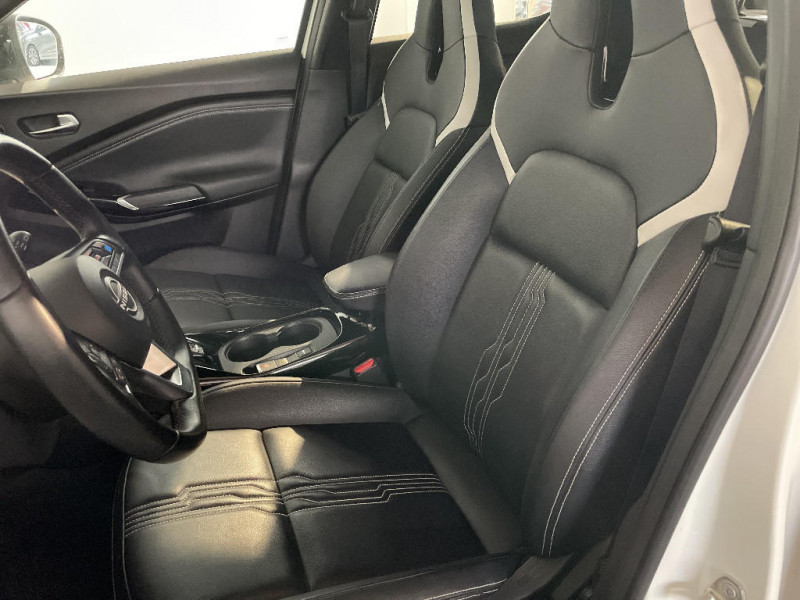 Repose-genoux en TEP / Rétroviseur intérieur électrochromatique / ABS et EBD / Alarme périmétrique / Antenne aileron de requin Noir / Bacs de rangement dans les contre-portes AV avec porte-bouteilles / Bluetooth+USB+AUX+12V / Caméra de recul avec radars de stationnement AV et AR / Ceintures de sécurité AV ajustables en hauteur / Ciel de toit Noir / Clignotants à trois clignotements / Combiné d'instrumentation avec écran LCD-TFT 7'' / Commandes au volant: contrôle de l'ordinateur de bord, audio, téléphone, régulateur et limiteur de vitesse / Contre-portes et tableau de bord spécifiques / Kit de réparation pneumatique / Liseuses AV et AR / NBAS (amplificateur de freinage d'urgence) / Nissan Connect Services / Pack Extérieur Noir Métallisé, Rouge Fuji ou Gris Perle / Pack Intérieur Noir, Orange ou Blanc / Pare-brise chauffant / Pare-soleil côtés conducteur et passager avec miroir de courtoisie / Peinture bi-ton / Plancher de coffre modulable / Poche aumônière au dos des sièges conducteur et passager / Poignées de maintien pour passager AV et AR / Sélection du mode de conduite (ECO, STANDARD et SPORT) / Sellerie Perso Noir, Orange ou Blanc / Sièges AV monoform style / Spoiler AR / Système audio radio avec écran tactile 8" avec interface personnalisable, Apple CarPlay et Android Auto, commandes vocales / Système "Chassis Control" : Intelligent Trace Control (contrôle actif de trajectoire) et Intelligent Ride Control (Contrôle actif de l'assiette) / Vitres AV/AR électriques avec mode impulsionnel côté conducteur / 6 HP / Direction assistée asservie à la vitesse / Eclairage d'ambiance (contre-portes et levier de vitesses) / Eclairage du coffre / e-Pedal Step / Feux de détresse à déclenchement automatique / Feux de route adaptatifs / Feux diurnes LED avec système Follow Me Home / Fonction des feux avant "Follow me Home" / Frein à main électrique avec aide au stationnement/démarrage et fonction Autohold / Freinage d'urgence intelligent (AEB) avec détection piéton et cyclistes / Indicateur de changement de rapport / Poignées de porte extérieures couleur carrosserie / Poignées intérieures d'ouverture de porte chromées / Points d'accès Wi-Fi / Points d'ancrage pour sièges enfants ISOFIX à l'AR / Pommeau de levier de vitesse gainé de cuir / Porte-cartes intégré au pare-soleil côté conducteur / Porte-gobelets (x2)